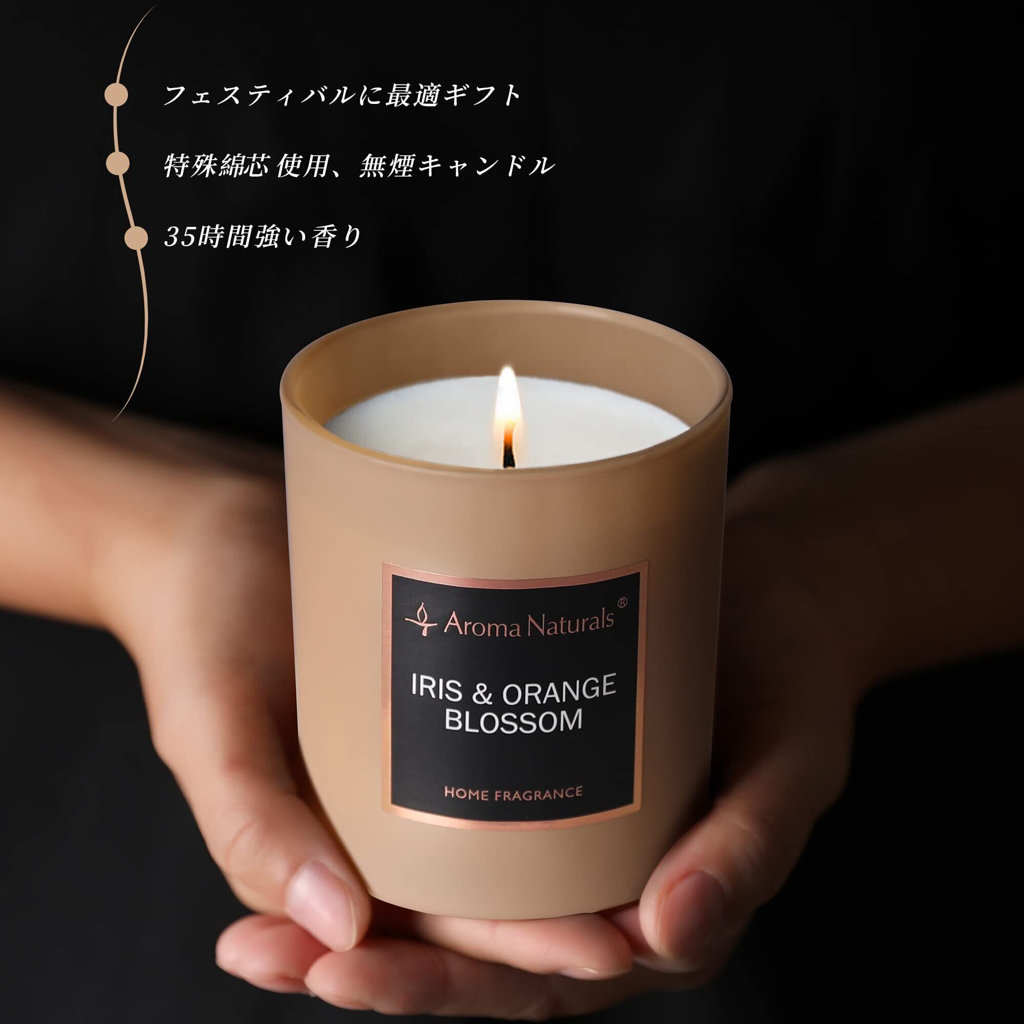 アロマキャンドル 大豆ワックスキャンドル 35時間ジャーキャンドル プレゼント (Iris & Orange Blossom)