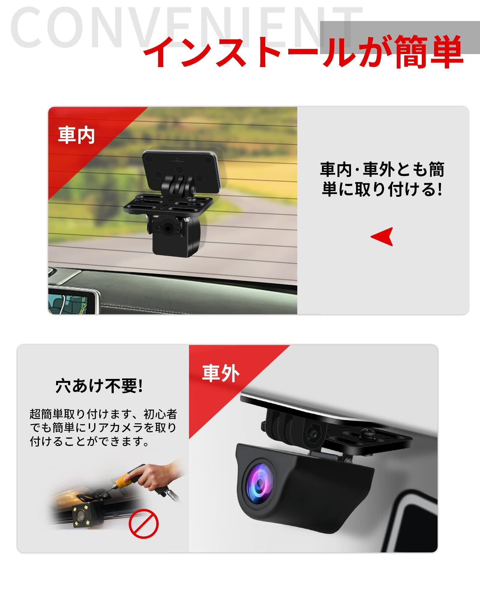 取り付け簡単:リアカメラ ステーは車に穴を開ける必要がありません。車への取り付けは、複雑な配線は必要ありません。初心者でも簡単に取り付けられます。