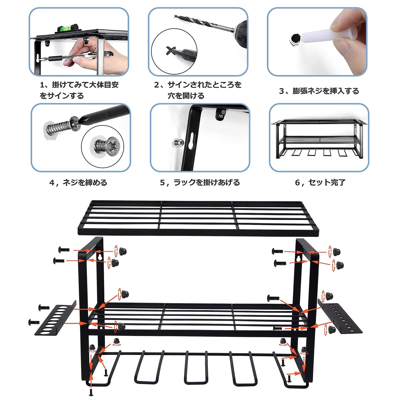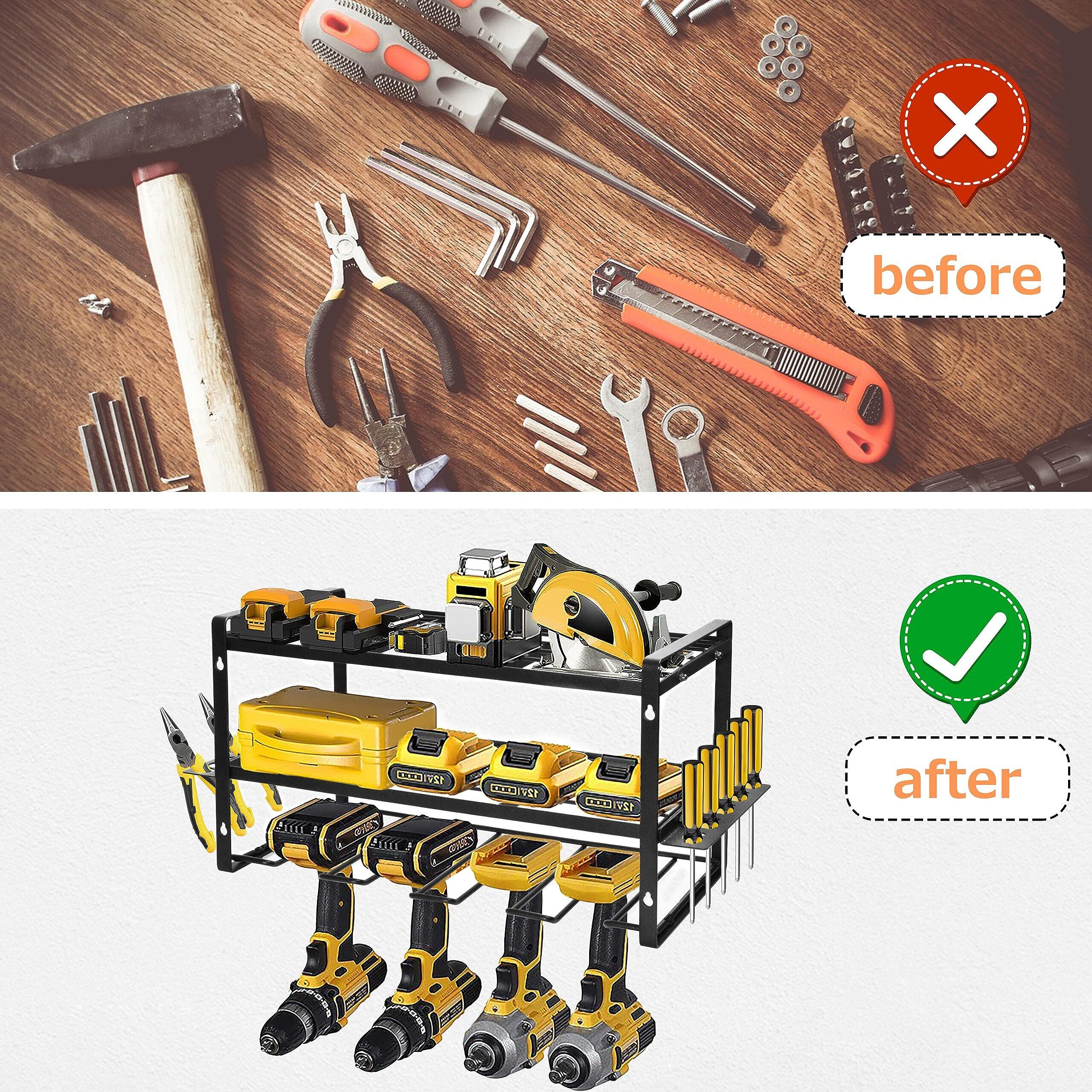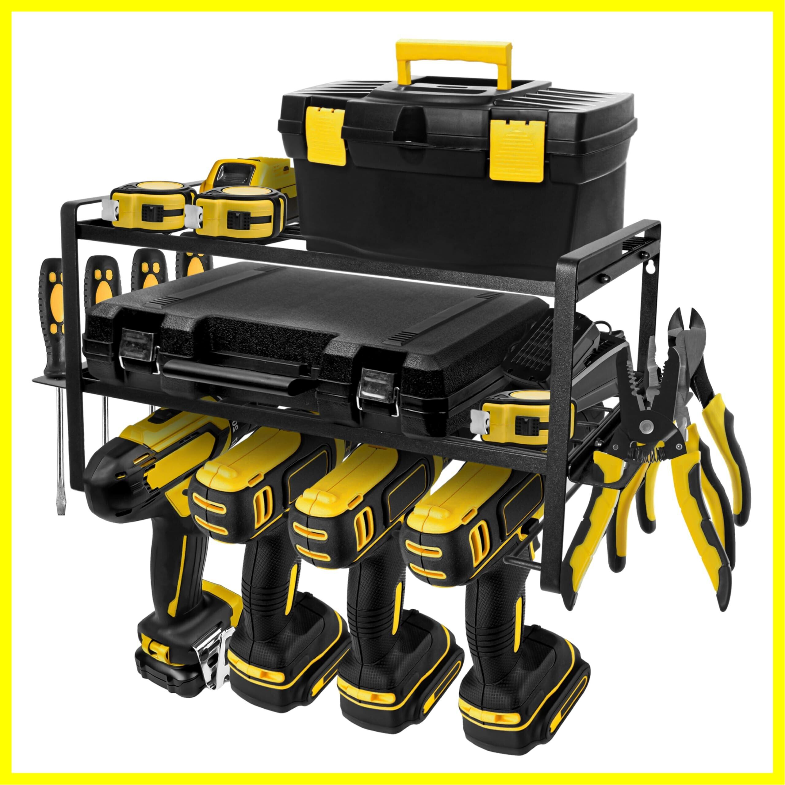 【大容量】ツールストレージ 棚 は最大4本の電動ドリルを収納でき、充電器、レンチ、アクセサリー、その他の小さな工具を一括収納でき、スッキリ!