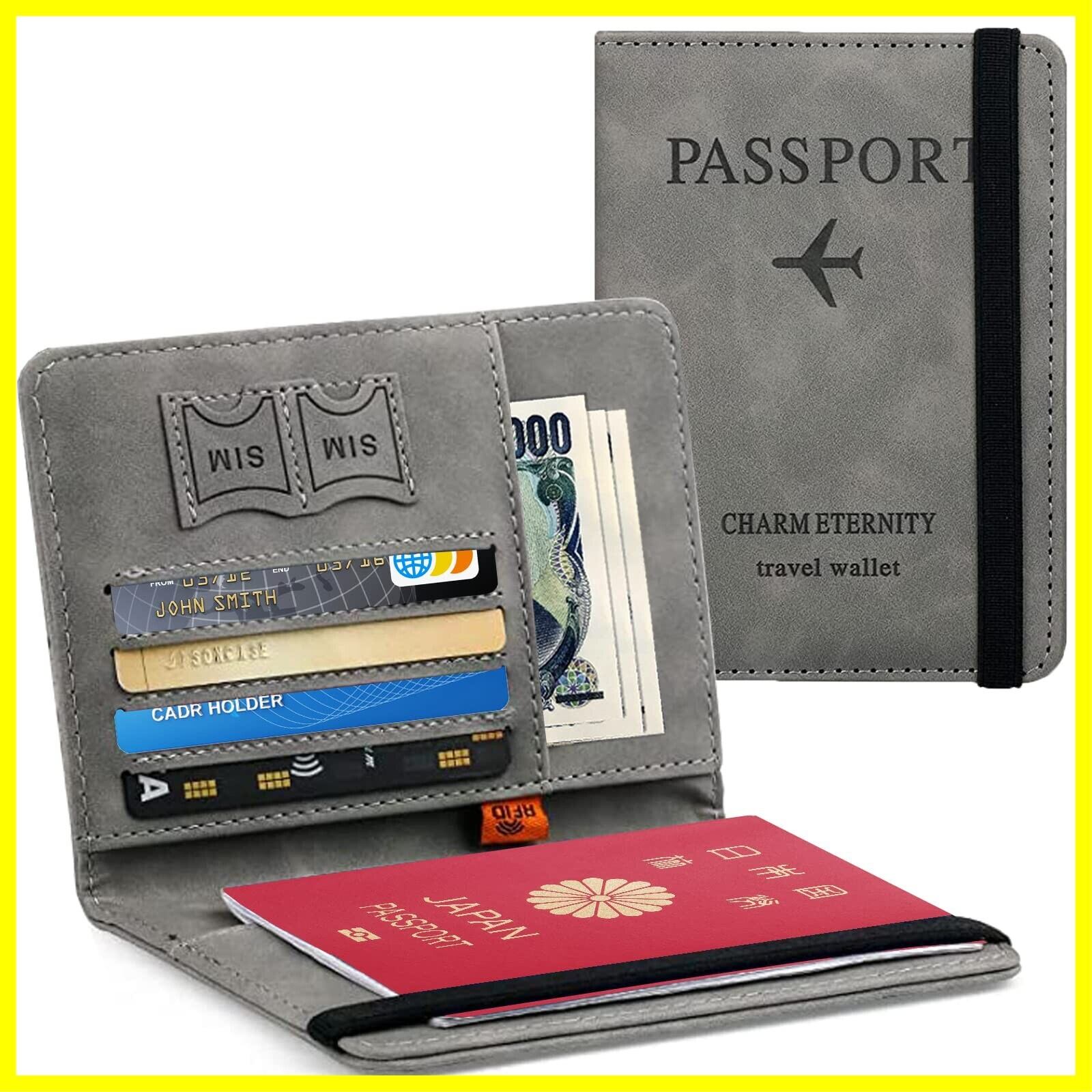 [Hueapion] パスポートケース スキミング防止 パスポートカバー 多機能収納ポケット パスポート カードケース ラベルウォレット 高級PUレザー 軽量 コンパクト おしゃれ 海外旅行 旅行用品 透明パスポートカバー付き (グレー)