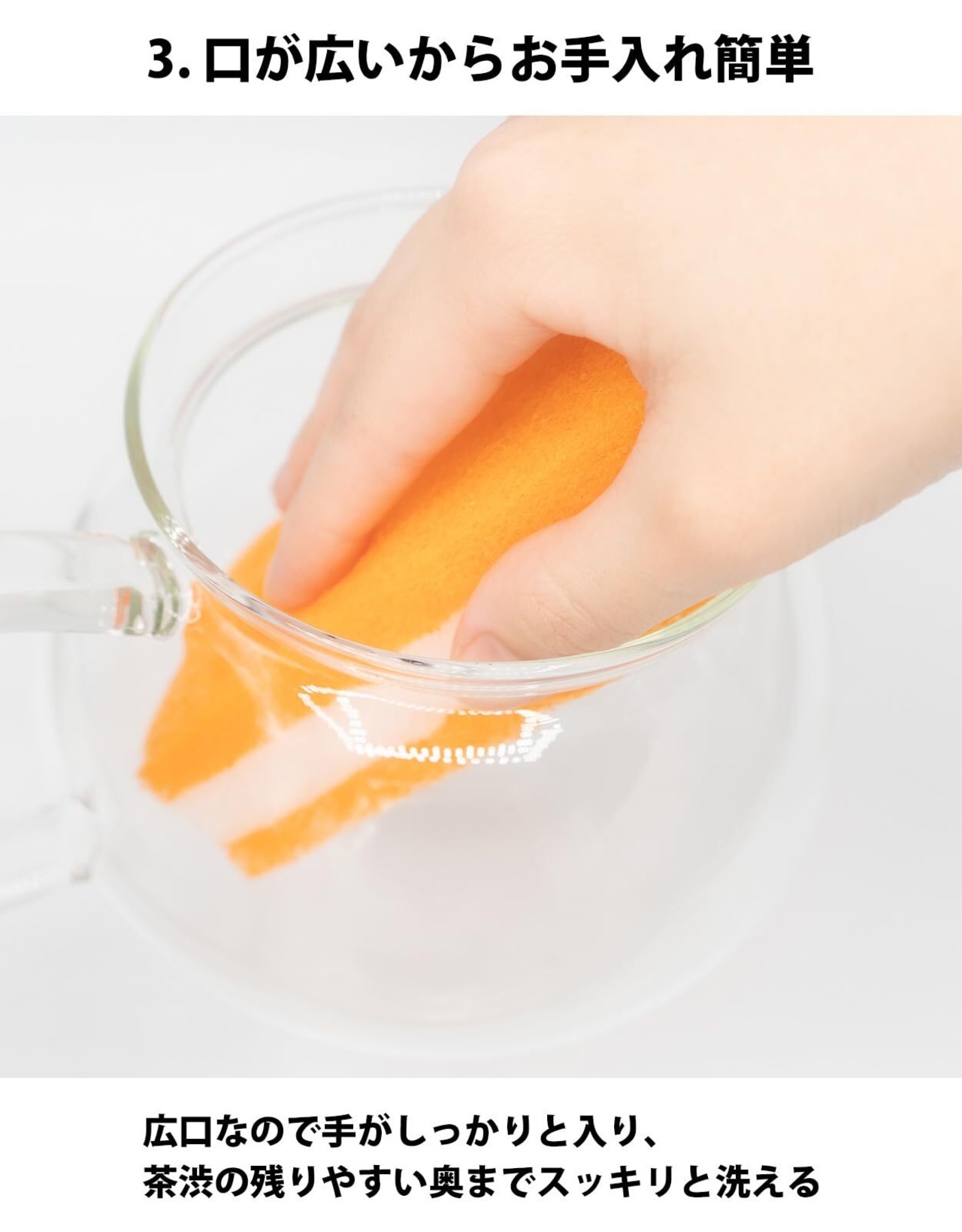 口が広いので手がすっぽり入る。洗い残しなくスッキリ