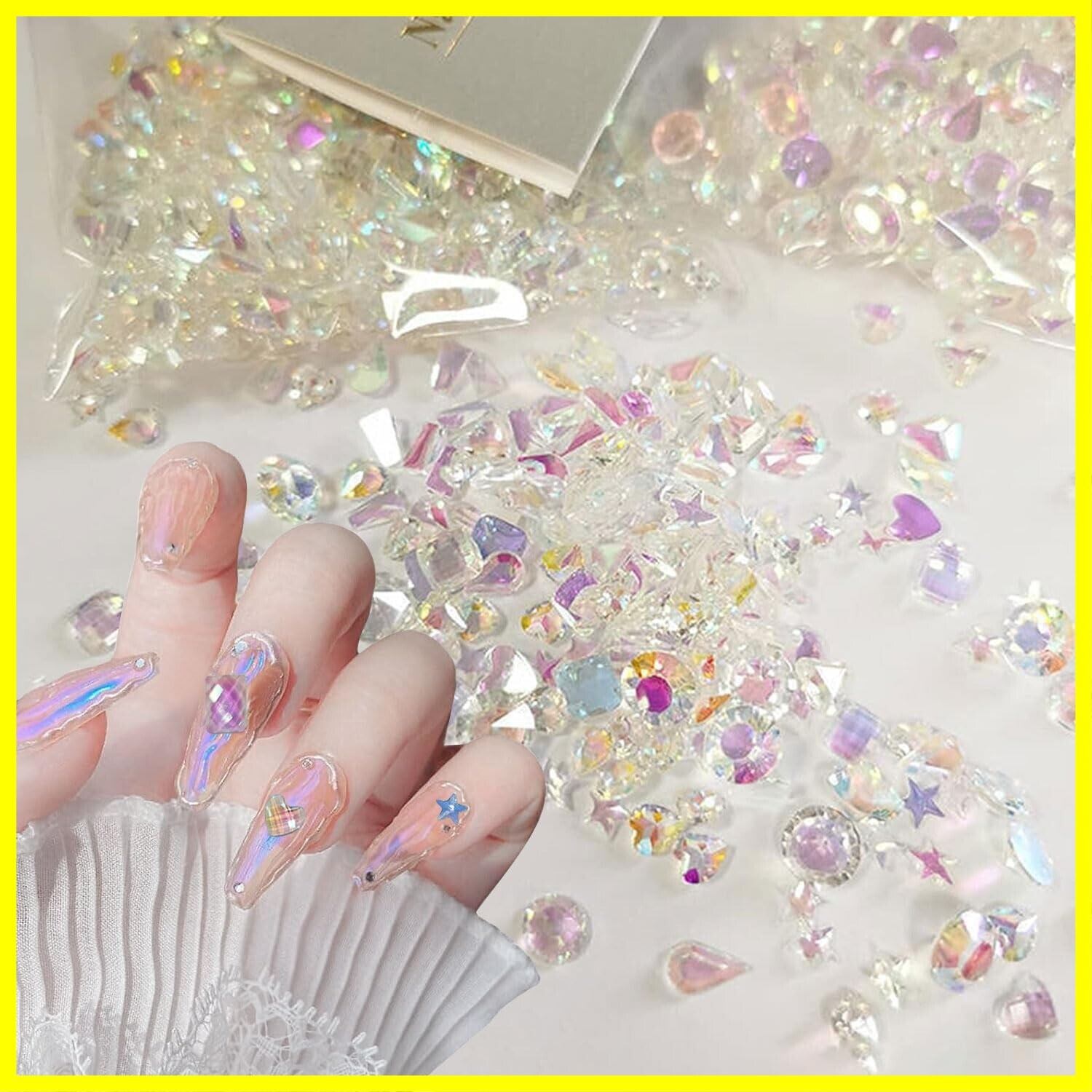 ラインストーン ネイルパーツ 約120個の小さなオーロラグリッター3D平らな形のネイルストーンのセットDIYカラフルなオンブレネイルアートデコレーション