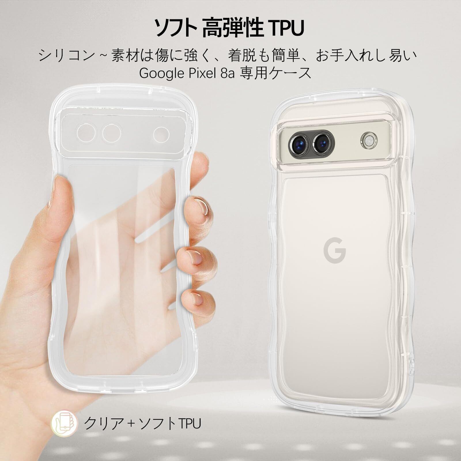 【ウェーブ湾曲縁&TPU肌触り】湾曲したエッジにより握りやすくなっています。Pixel 8A透明ケースは滑らかな液体シリコンゴムと柔らかいTPU製で、耐傷性、耐指紋性、耐衝撃性に優れ、取り外しも簡単,お手入れし易い。