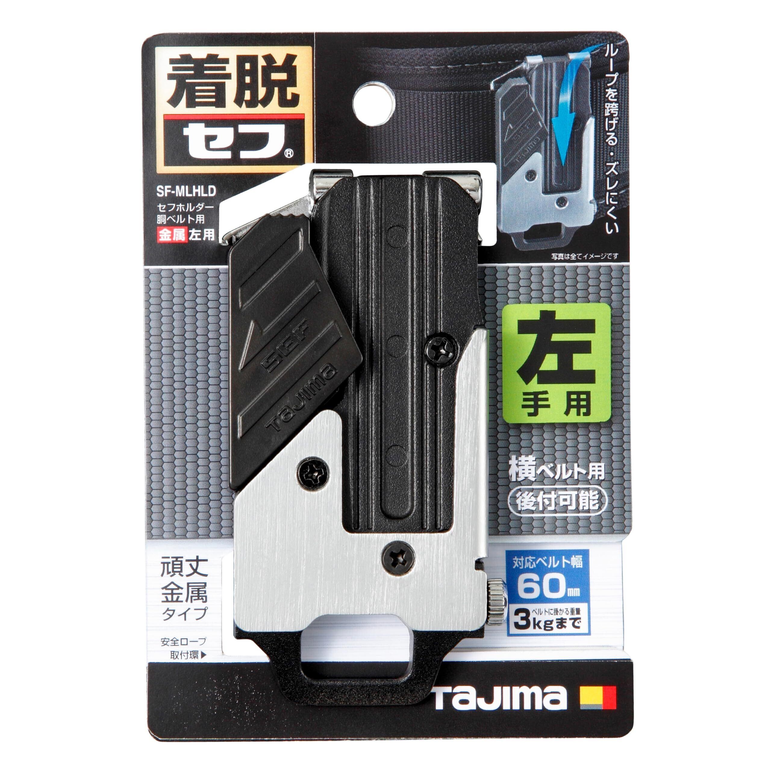 タジマ セフシステム セフホルダー胴ベルト用 金属 左用 SF-MLHLD 樹脂製に比べ強度は3倍以上(当社テスト) ベルトループを跨いで挿せるスペース活用設計 位置ズレしにくい横ズレ防止リブ構造 ゆるみ防止特殊加工ネジ採用 安全ロープ取付環付