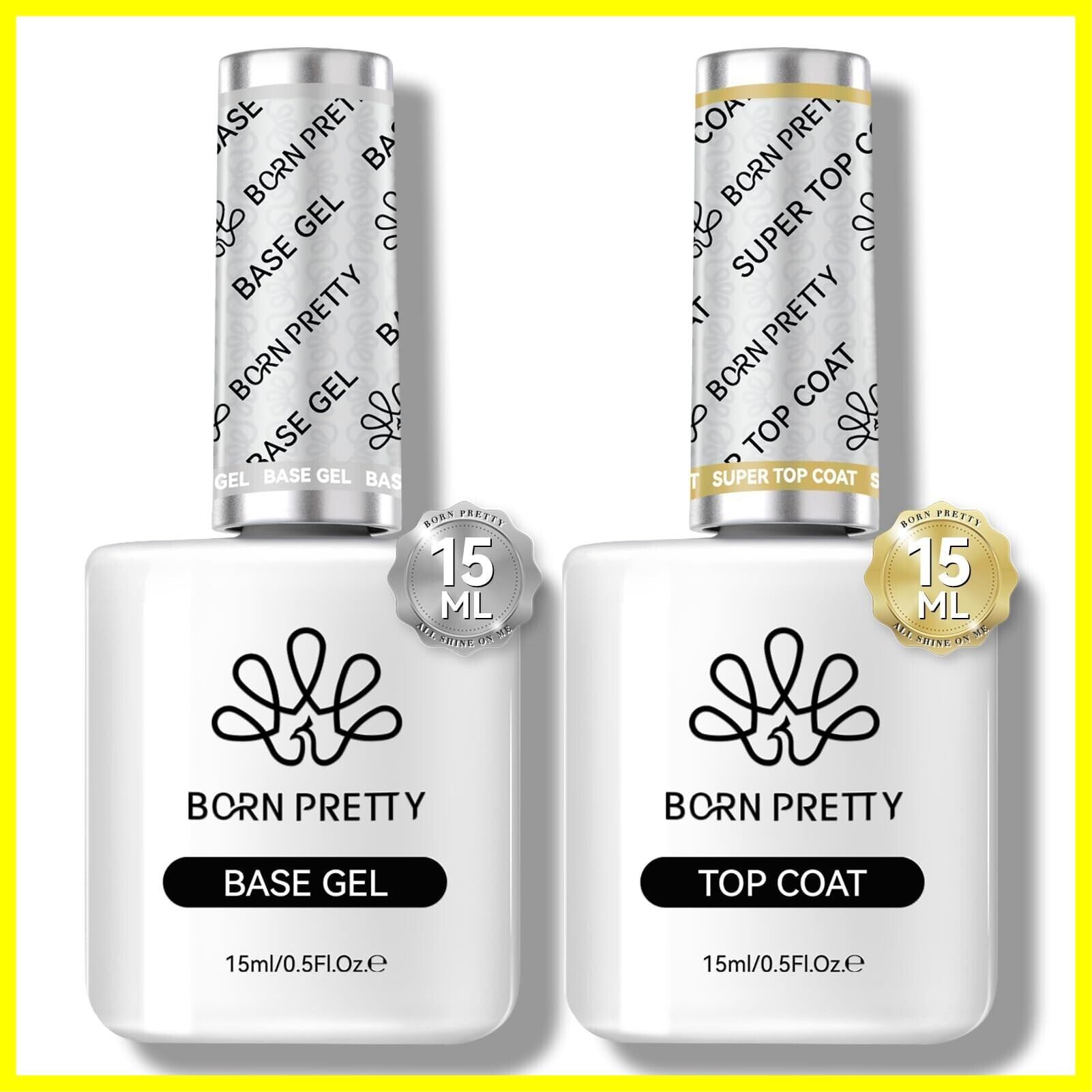 BORN PRETTY ジェルネイル トップコート ベースコート 15ml 2本トップコート ジェル ベースコート セット ノンワイプ 拭き取り不要 大容量 UV/LED対応 ベースジェル 速乾