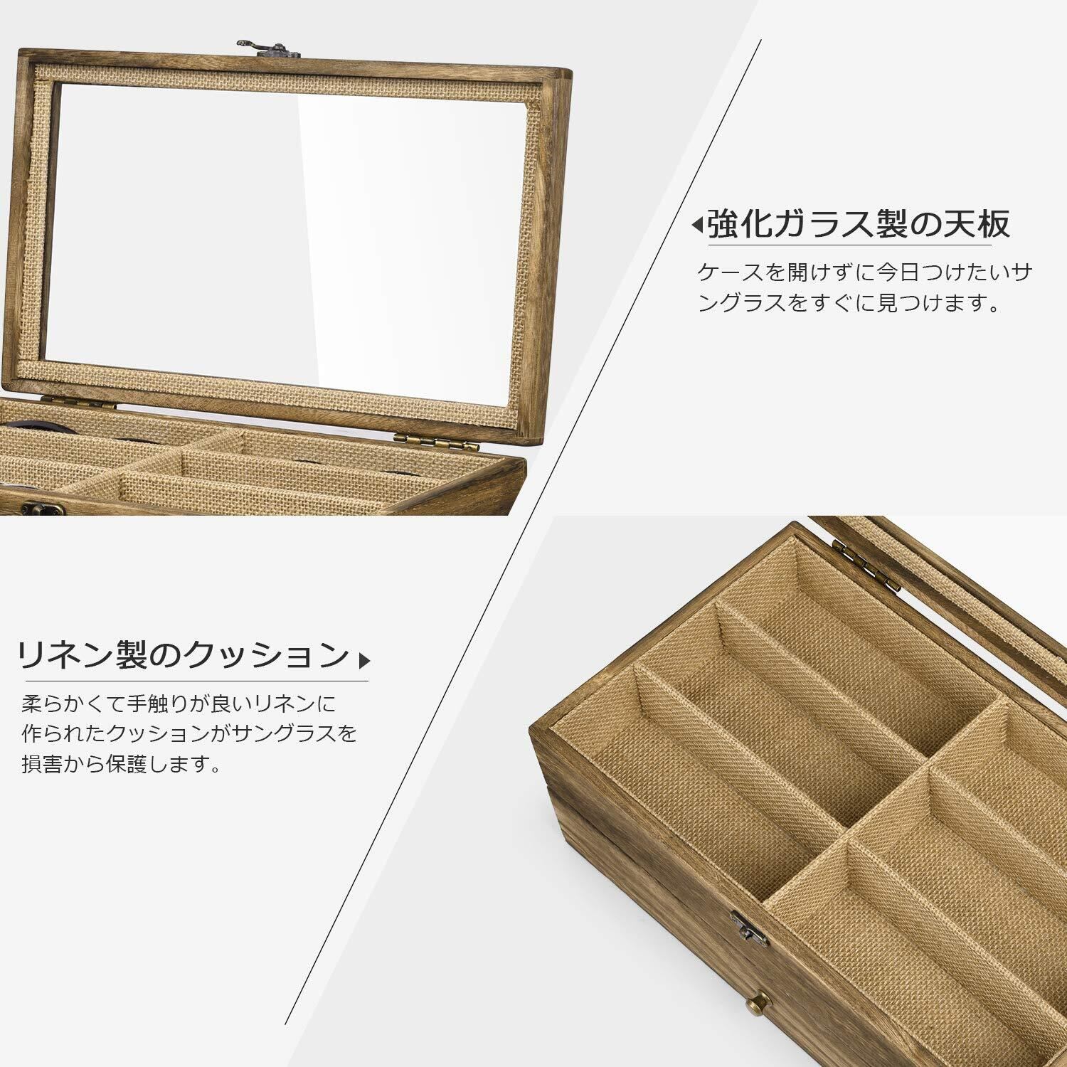 【レトロなデザイン】ボックスは高品質な木材で作られて、表面に明らかな木目が見えます。内側を覆う素朴なリネンは、メガネを傷から保護しながら、独特の美しさを表します。(ご注意:亜麻布は普通のクロースと異なって、一目で粗っぽい感じですが、実が一番天然の布の状態です。もしこのような質感を気にすると、ご検討のほどよろしくお願いいたします)