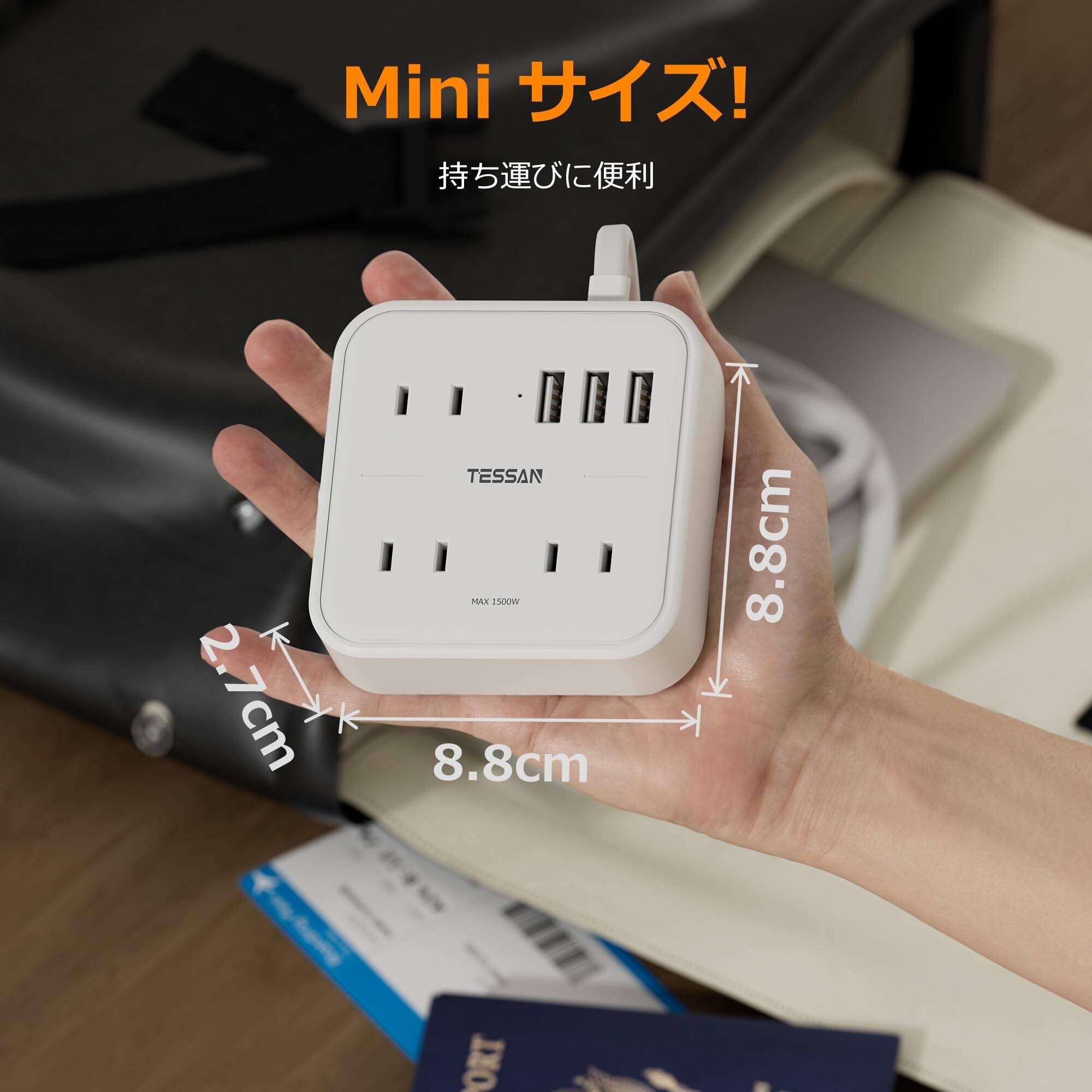 【小型・旅行用USB充電タップ】:この電源タップは小型でコンパクト、ちょっとしたお出かけでも、カバンのスペースを占めません。持ち出すが便利で、旅行や出張などにも最適!