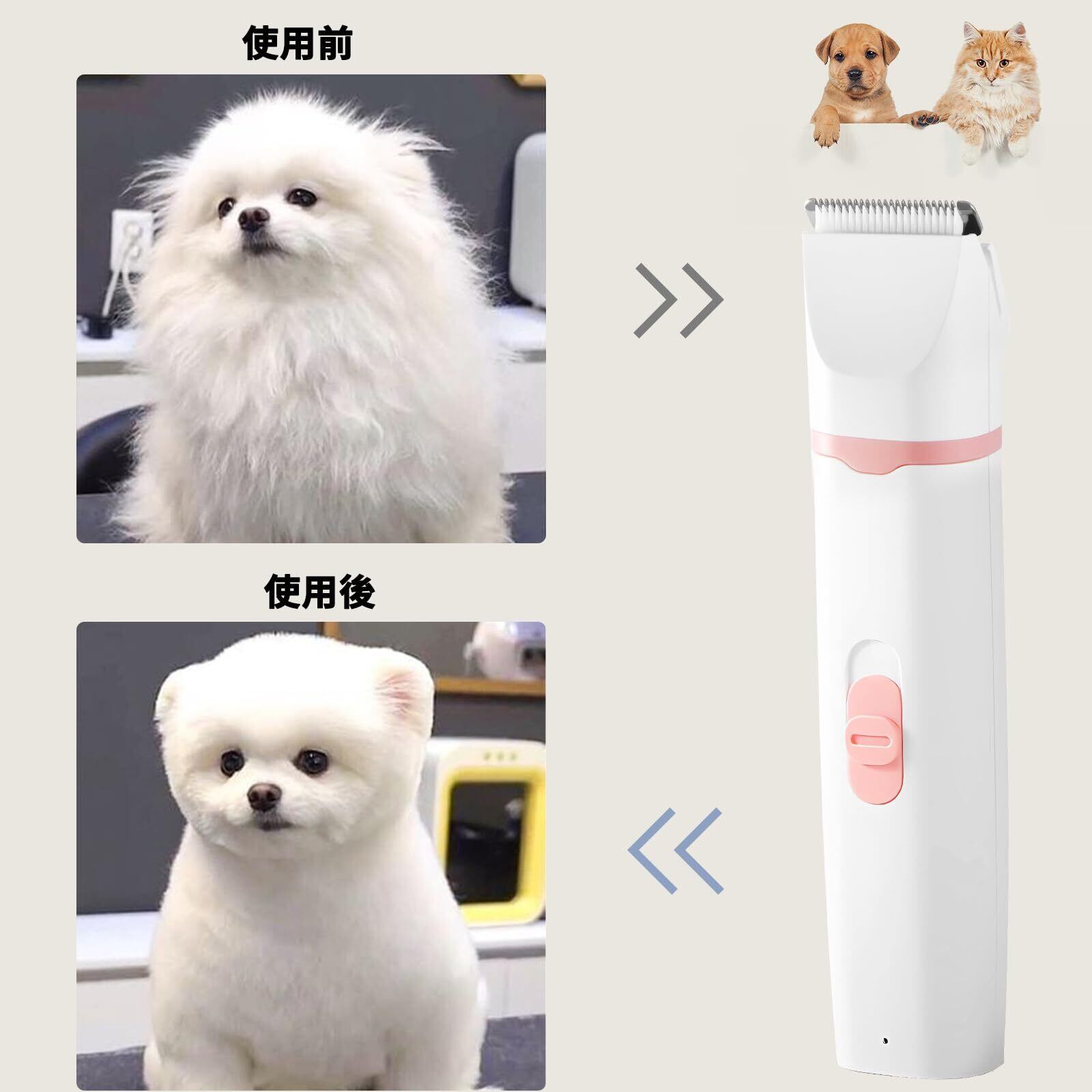 Paerduo犬用バリカン 多機能 4in1ペット用 2段階スピード調整 猫 バリカン 低騒音 足裏 爪 耳裏 顔回り お尻 全身カット可能 USB充電式 ペット用グルーミングセット 初心者 プロ用 業務用 犬/猫/小動物に対応 (ピンク)