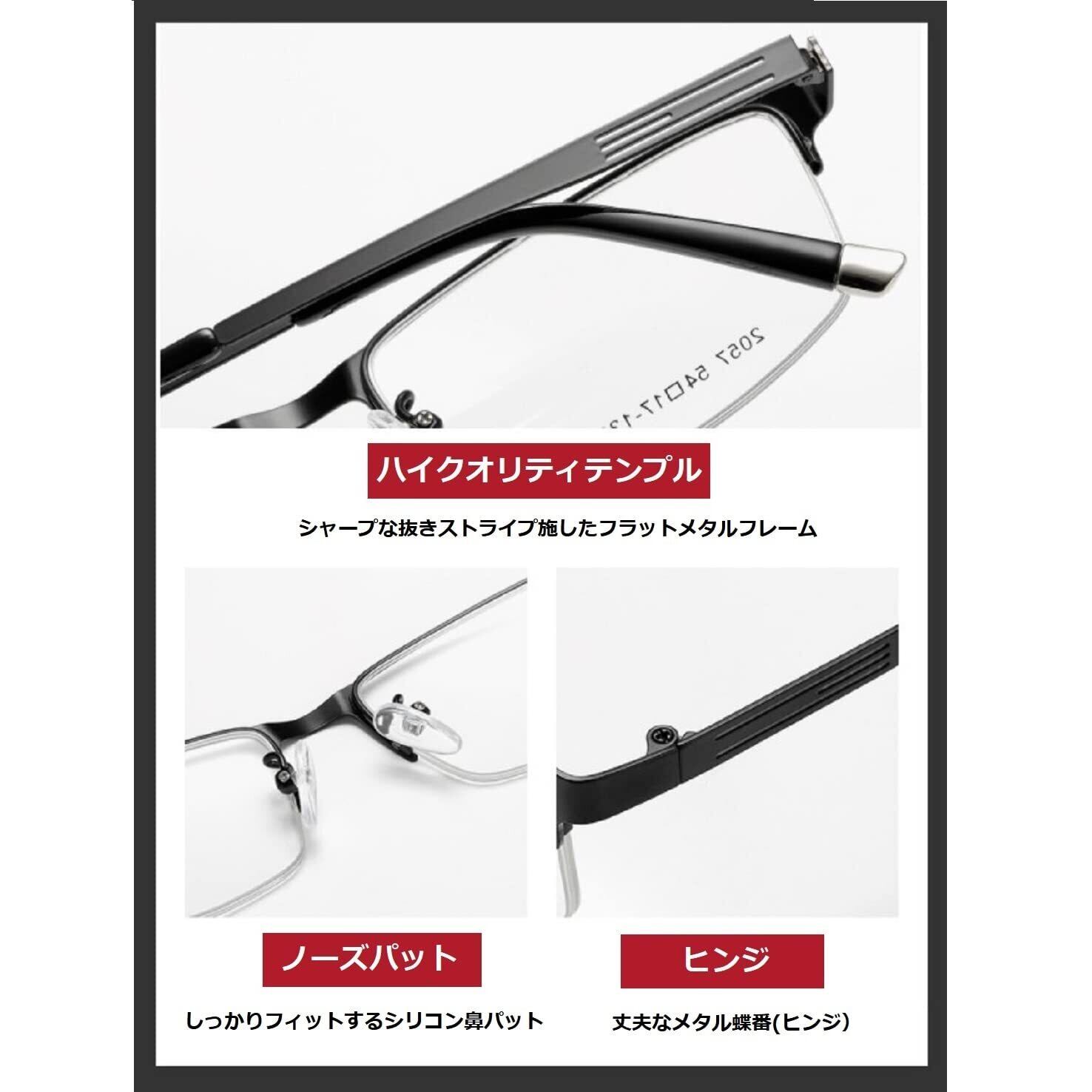 【ブルーライトカット率JIS規格40%】 40%カットレンズは、デスクワーカーなど、仕事でPCを長時間を使用する人や、eスポーツやゲーマー・スマホを長時間使う方の為に適したカット率です。(数値が高いほど優れているというわけではありません)【フレームデザイン特徴】ビジネスシーンを演出するハーフリムフレーム(ナイロール)は、レンズ淵に溝を彫り透明なナイロンの糸でレンズを固定するタイプでフレームが目に入りにくく、広い視野が確保できます。スクエアなメタルデザインがシャープで切れ味のあるダンディズムを演出します。