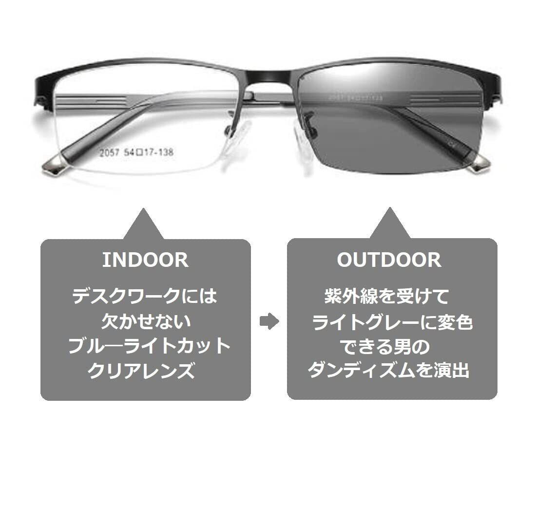 [REONAS] 【 ブルーライトカット メガネ + 調光 変色 】 パソコン用 メガネ ビジネス PCワークから外出時はサングラスへ変化する2Way仕様 軽量 UV 90%以上 切れ味のあるダンディズムを演出 BRAND