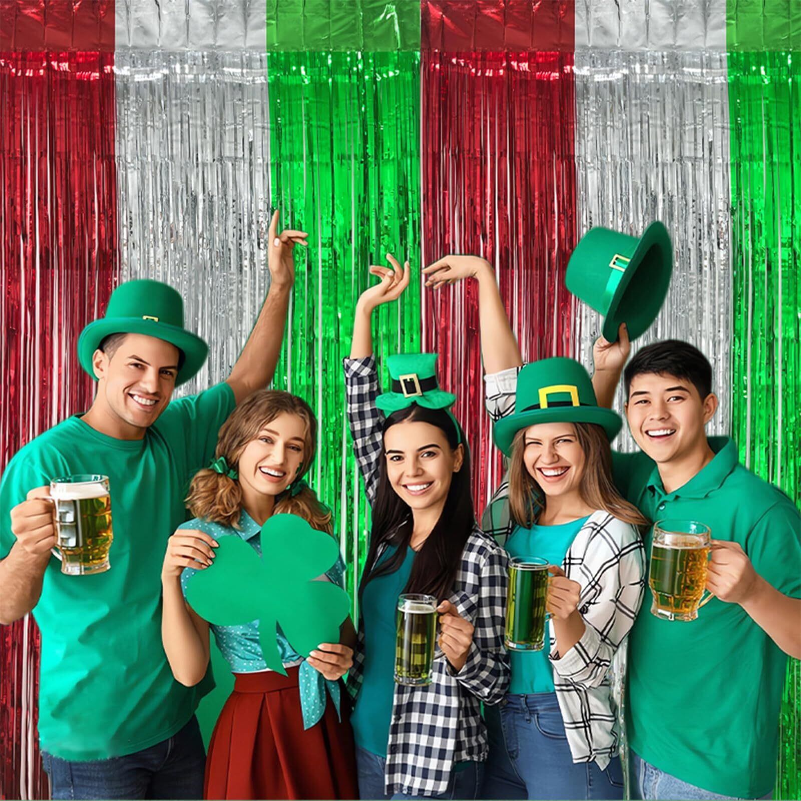 クリスマス飾り:クリスマスに欠かせないレッド・グリーン・シルバーの3カラーを組み合わせてるキラキラカーテンで飾り付けてクリスマスを楽しもう一気にゴージャスでクリスマスムードが出ることは間違いなしです