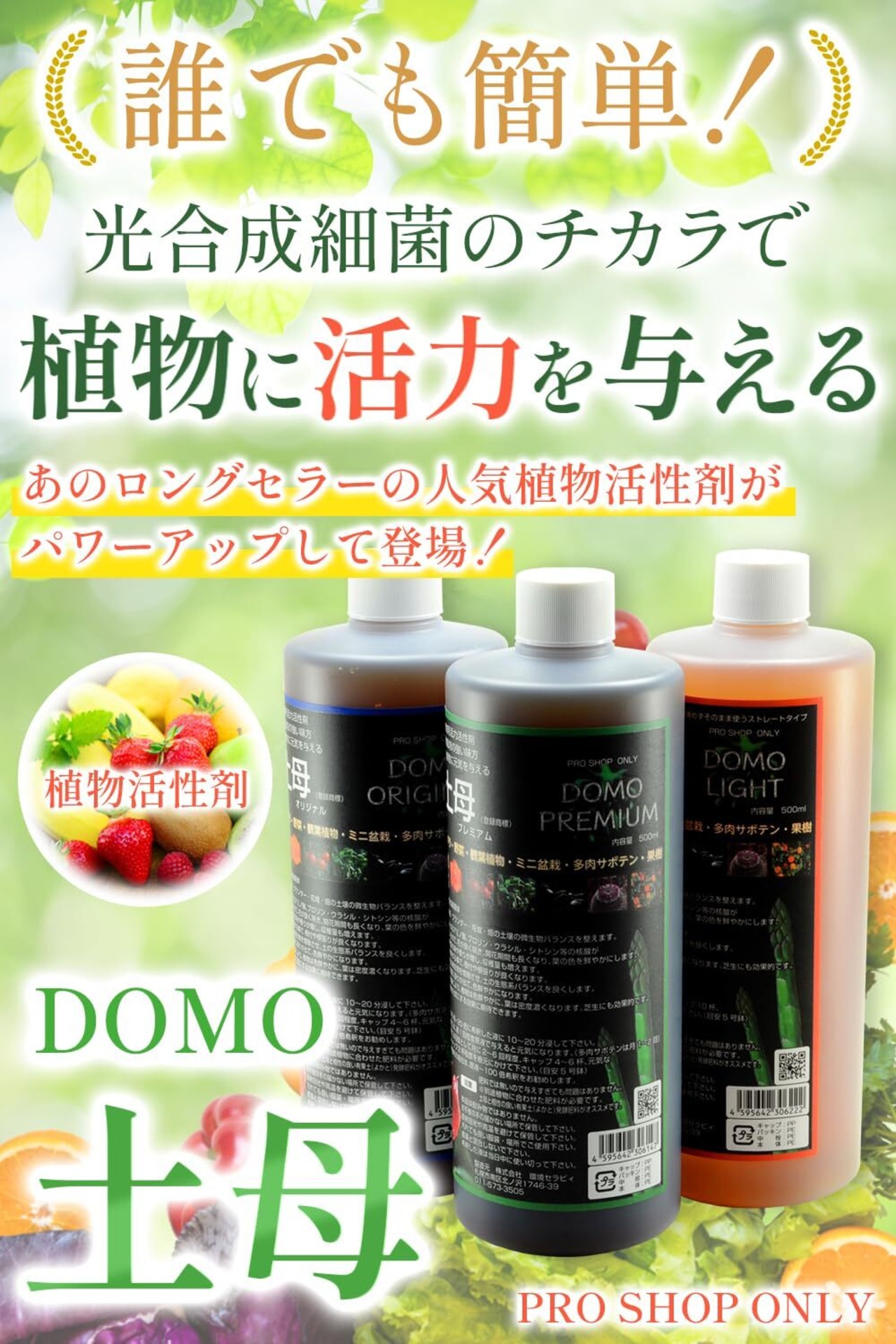 土母について:光合成細菌という微生物のが主成分の植物活性剤です。土壌にいる有益な微生物を増殖させたりバランスを整えることで、植物を元気にします。