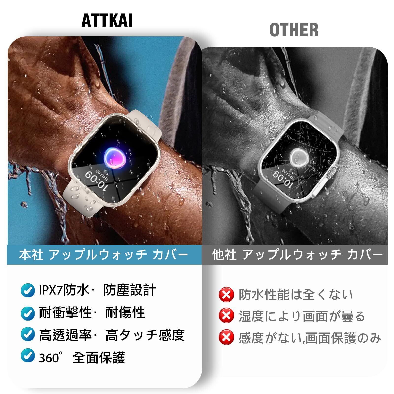 【全面保護&丁寧なサービス】ATTKAIには耐久性に優れたPC素材を採用。9H硬度の強化ガラスにより、液晶画面への傷やダメージを防ぐこともできまして、普段使い程度の落下では、Watch本体に傷がつくことはほとんどありません。 商品についてご不明な点がございましたら、お気軽にメールにて連絡してください。返品、交換、返金について心配する必要はありません、お任せください。24時間以内に問題を解決いたします。