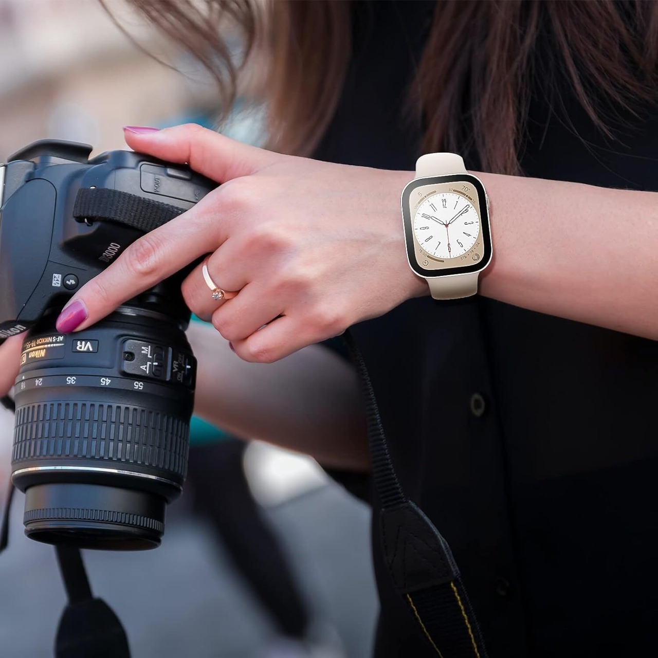 【防水・防塵ケース】apple watchカバーの防水機能は全面的にアップグレードされました。新型保護ケースでは、スクリーンの強化ガラスフィルムの下部に防水ソフトラバーシーリングリングが内蔵されており、水がガラスフィルムと本体の間に入るのを効果的に防ぎ、日常使用中に水に触れることで生じる画面タップ問題を回避し、日常のスポーツや水上活動に最適です。