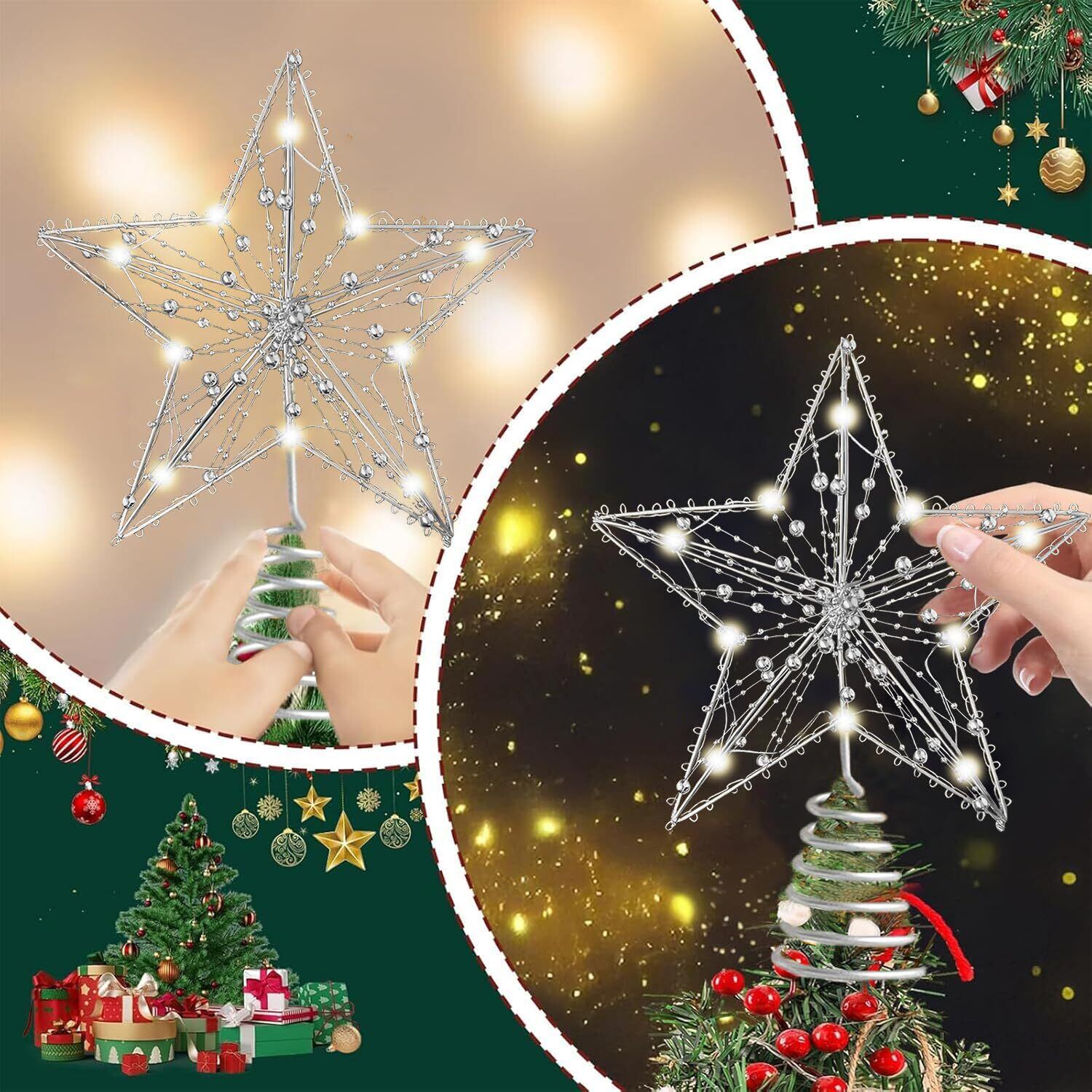 TIKALON クリスマスツリー トップ 星 led 飾り ツリートップ クリスマスツリー パーティー装飾 錬鉄工芸品の星 (シルバー)