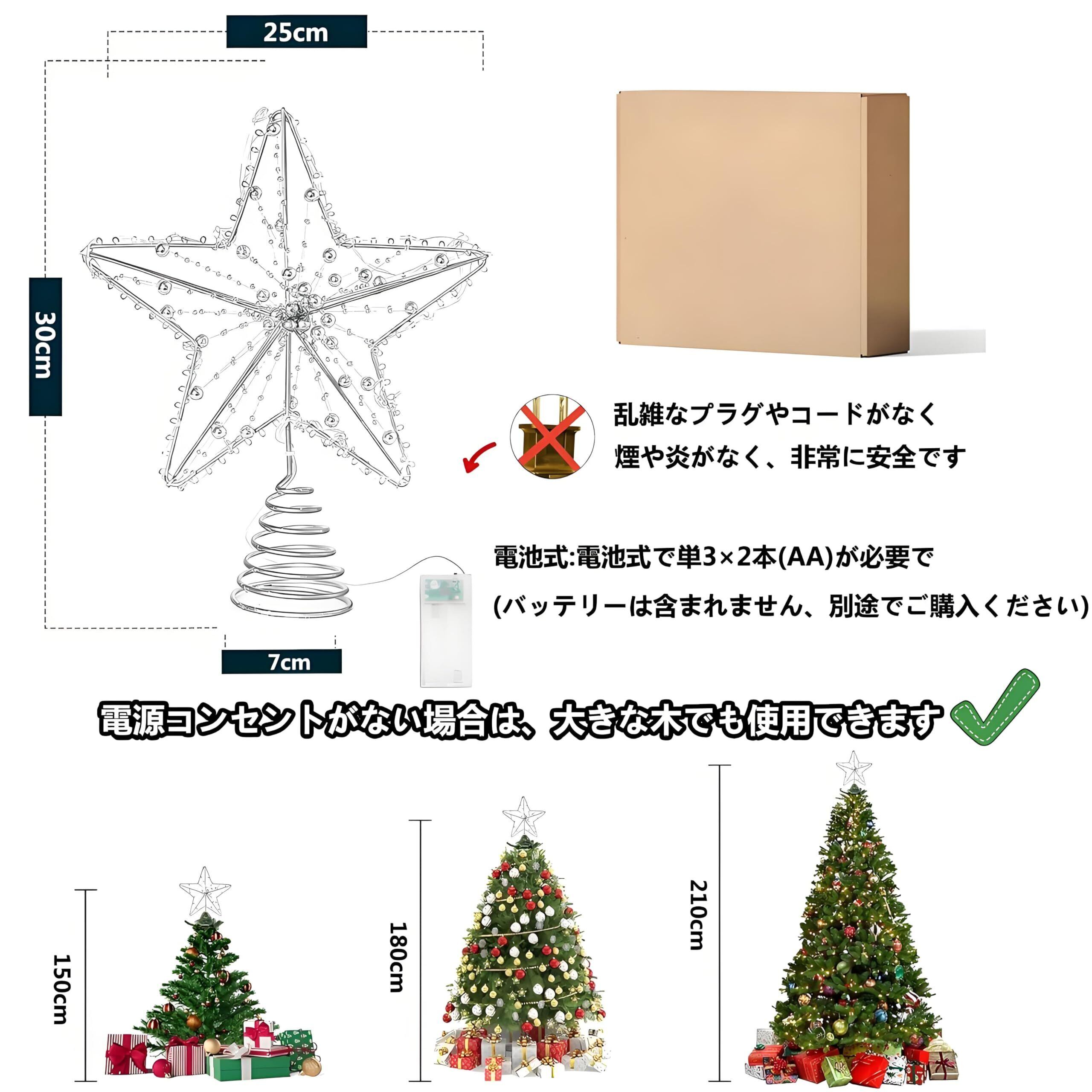 【デザイン】ledのデザインです(2個*単三電池)。室内を暖かく照らせて、昼夜を問わず、クリスマスツリーを美しく飾ります。クリスマスや他のイベント、祝日でも欠かせない飾りアイテムです。
