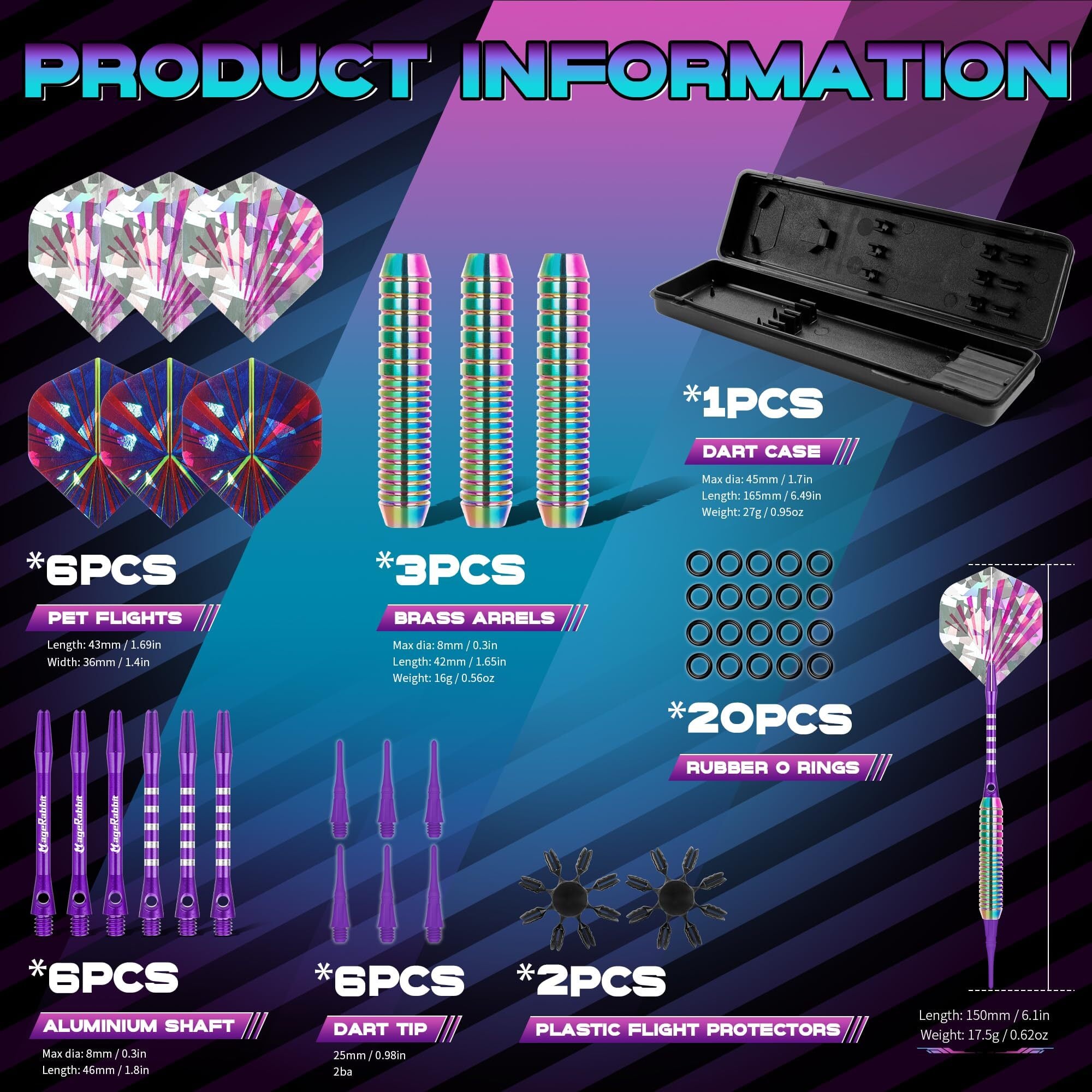 MageRabbitソフトチップダーツセット、3本のアルミシャフト、プロフェッショナルダーツ、3枚の予備ダーツフライト、3本の交換用プラスチックシャフト付き、銅素材のダーツ 16g 電子ダーツボード用, ダーツ 矢,ダーツ 矢 初心者