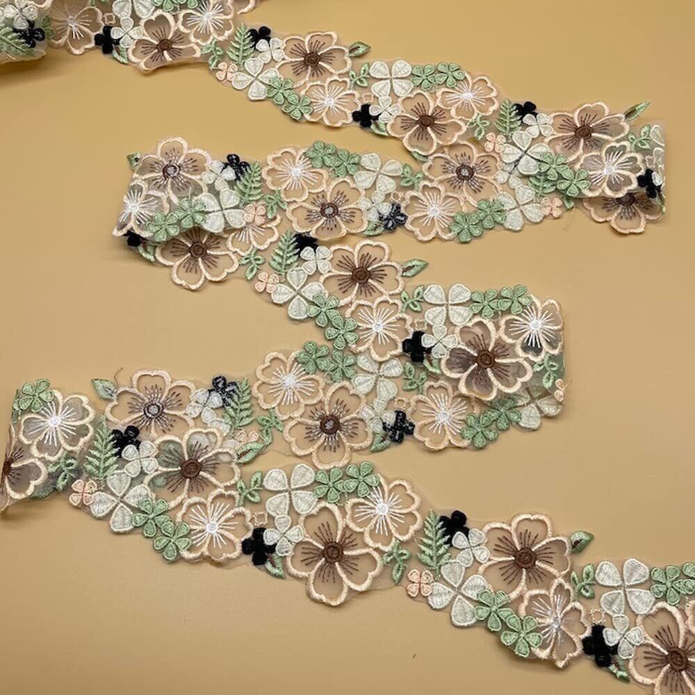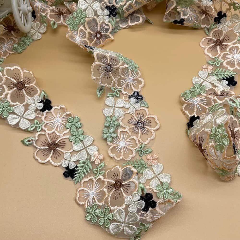 レースリボン 花柄刺繍リボン 幅6.5㎝ 1.8m/巻 手芸用品 花柄 裁縫 ハンドメイド素材 DIY 誕生日 クリスマス ギフト 装飾材料
