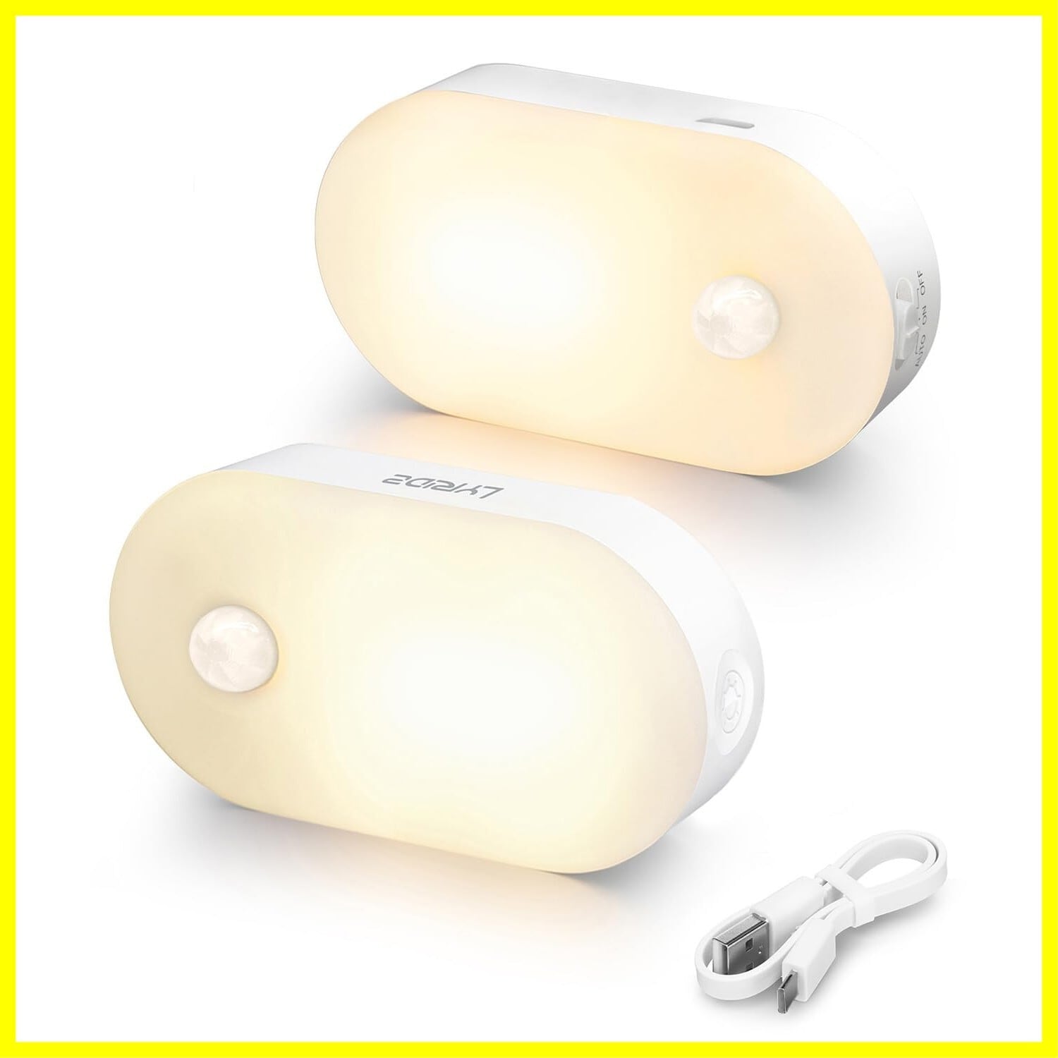 Lyridz LEDセンサーライト 人感センサー 足元灯 usb充電式 足元ライト 人感 ナイトライト 無段階明るさ調節 3つのモード 電球色 省エネ 廊下 寝室 玄関 階段 【2個セット·日本語取説】