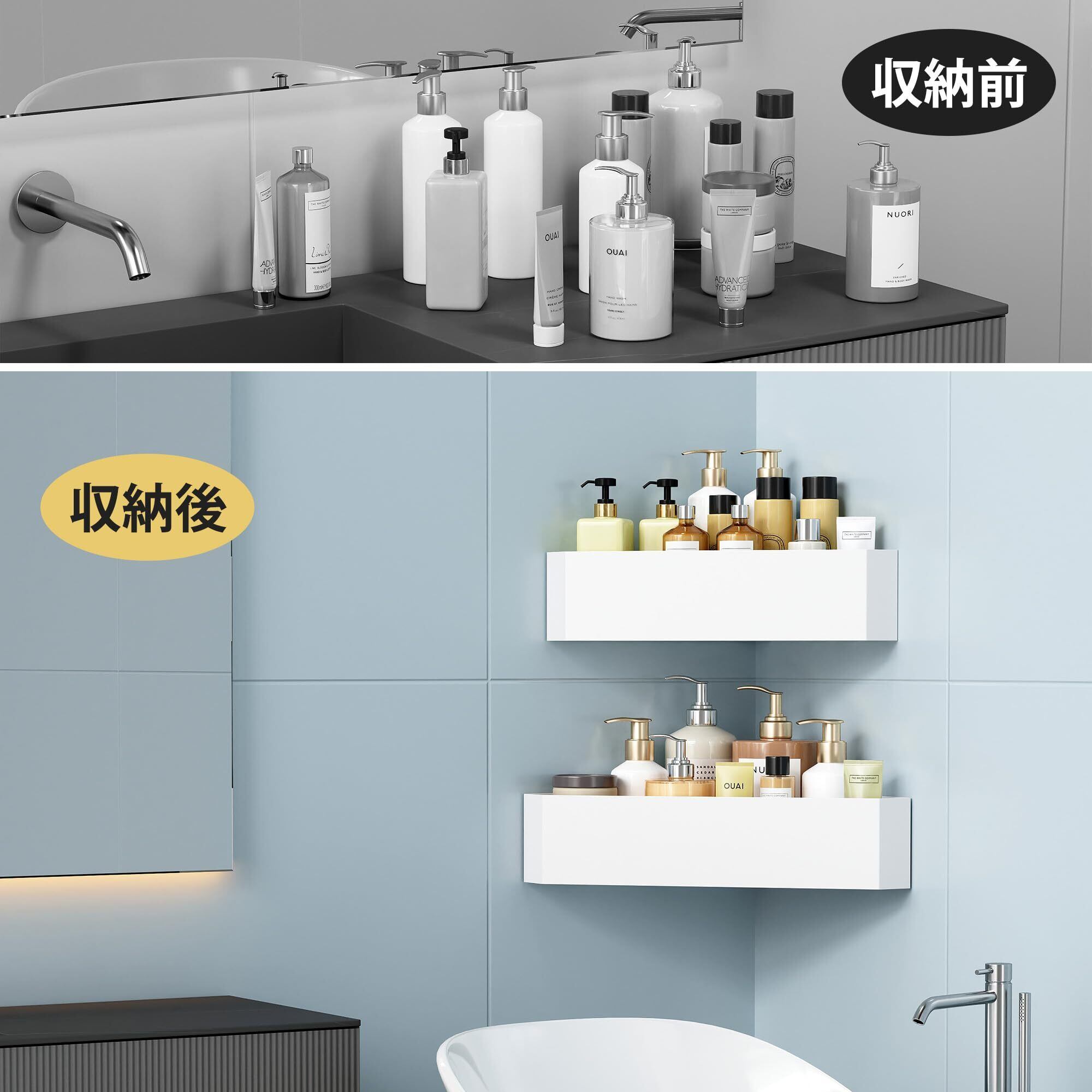 大容量:2 パックの浴室用ラックはソープボトルやお子様のおもちゃ収納におすすめです。浴室の必需品を整然と片付けます。省スペースで、家をもっとキレイになれます。 コーナースペースを最大限に活用。高品質の厚みのある金属コーナーシェルフ、頑丈で耐久性があります。