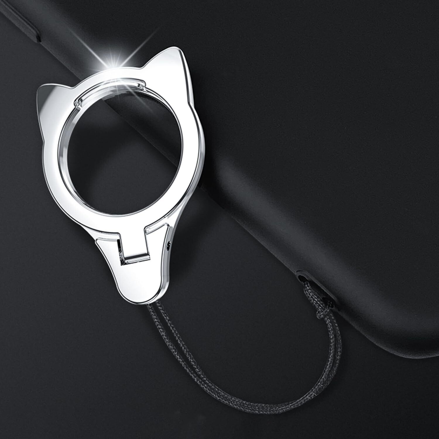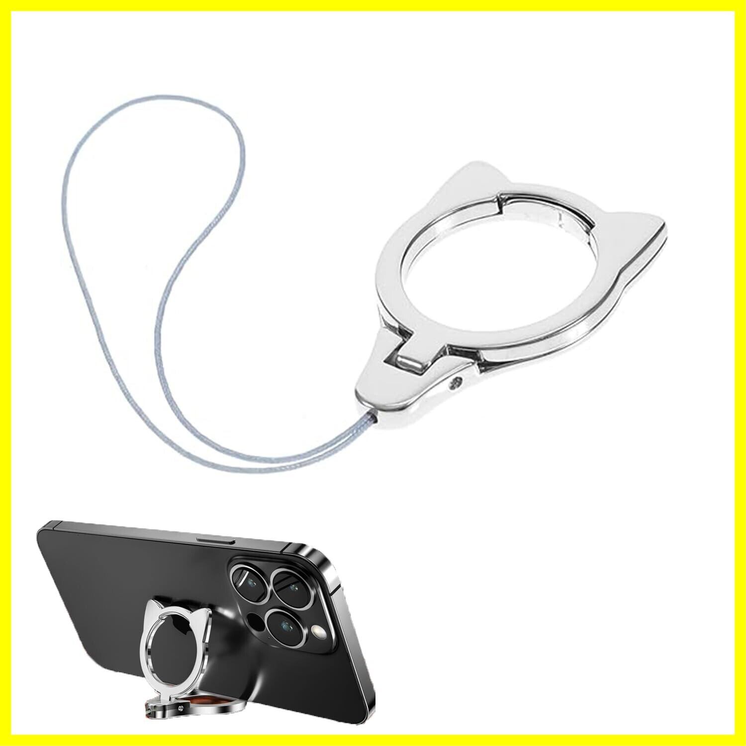 スマホリング スマホスタンド 2in1 落下防止 猫 かわいい 猫耳 スマホアクセサリー スマホストラップ 携帯ストラップ スタンド リングストラップ スマホ落下防止 さびない 丈夫 携帯電話ホルダーストラップ 多機能クリエイティブリングバックル、携帯電話ホルダーとして使用可能 シルバー