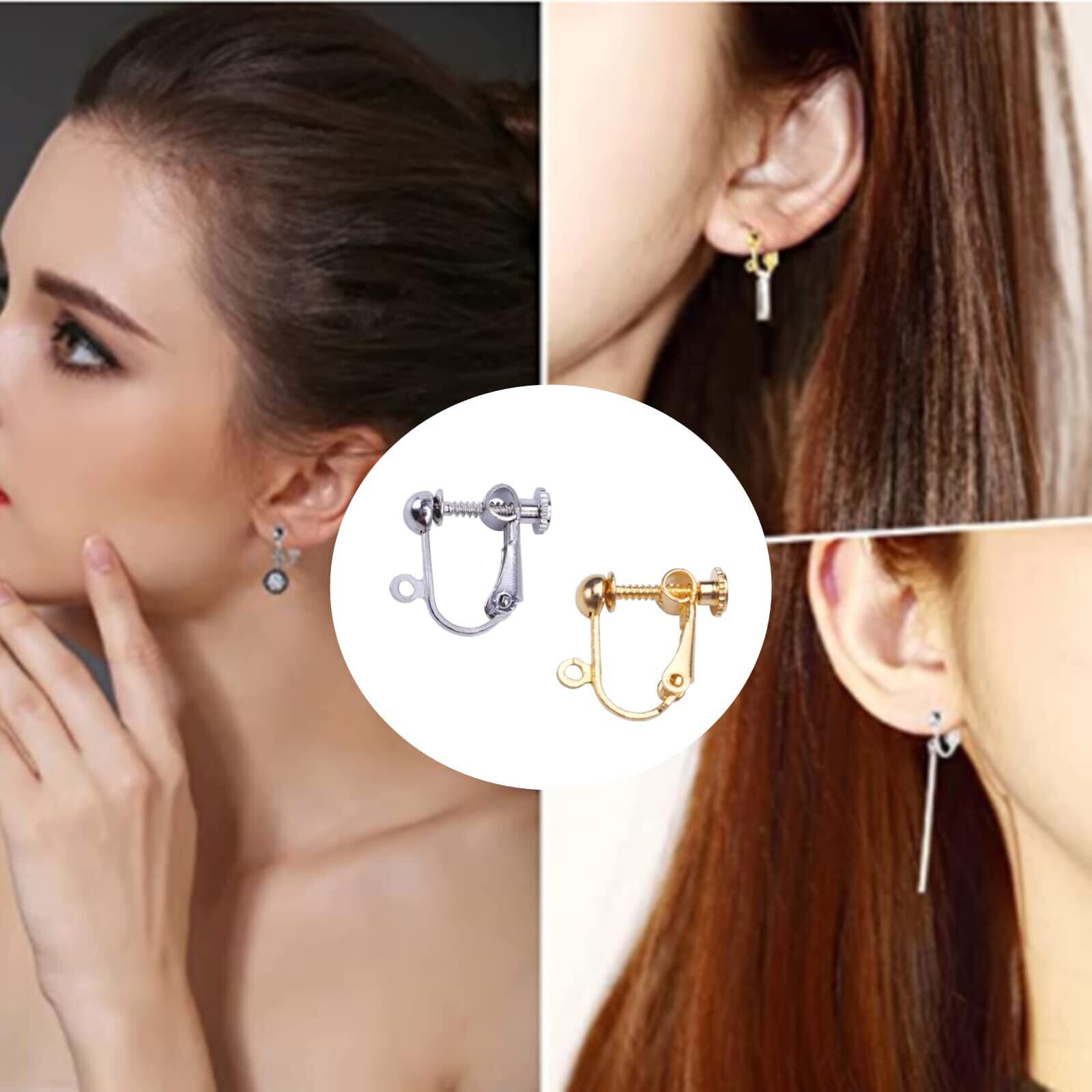YINKE イヤリングパーツ 40個 手芸 手作り用 パーツ イヤリング 耳穴なし アクセサリーパーツ ネジバネ式 DIY 基礎金具 (ゴールド+シルバー各20個)