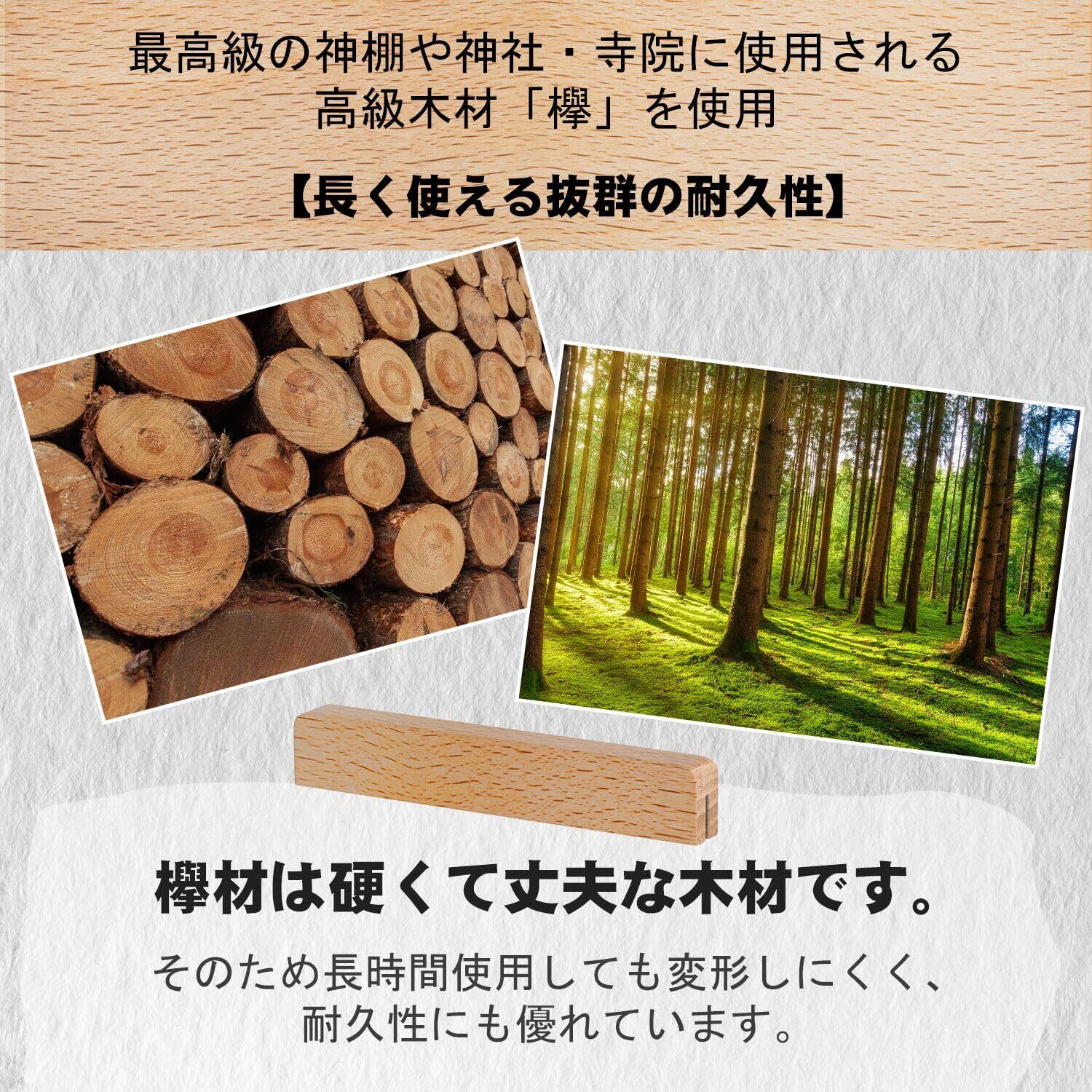 【置き型・掛け型両方兼用】壁掛け用フック設計で賃貸でもOK。本体がブナ製でしっかりと自立して置けます。お客様のライフスタイルに合わせて置いても掛けても、自由にお祀りできるモダンな神棚です。