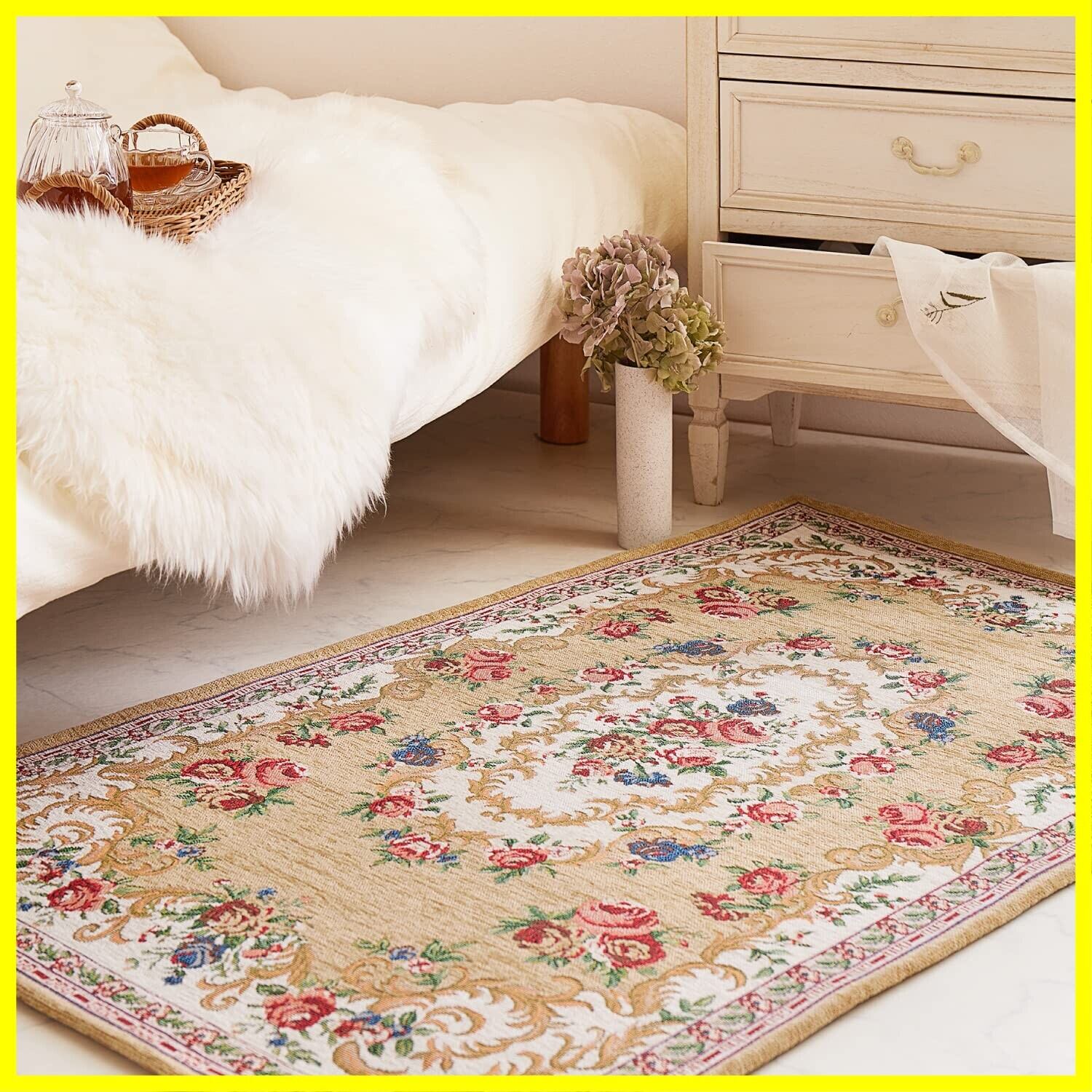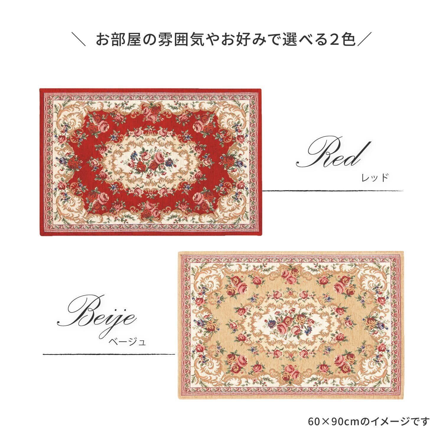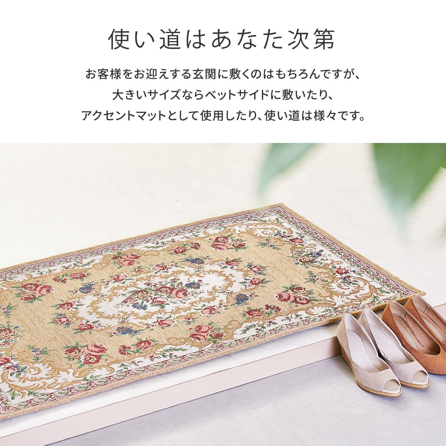 萩原 玄関マット 室内 ベージュ 約68×120cm 「ザイン」 ゴブラン織 アクセントマット 絨毯柄 クラシカル エレガント 洋風