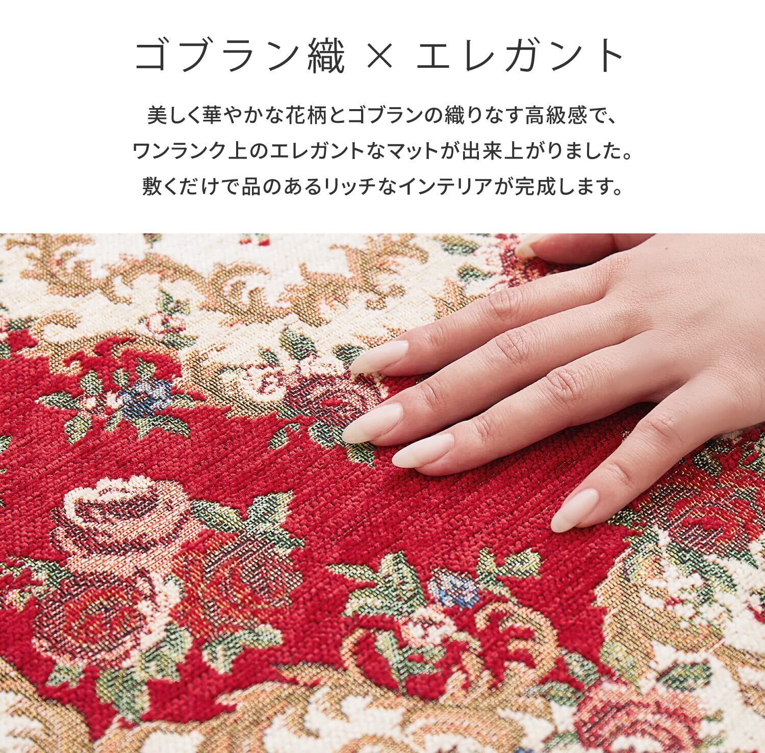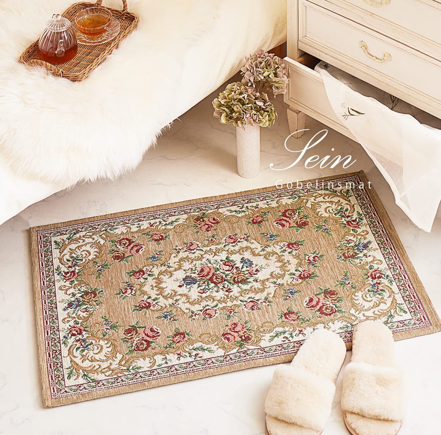 刺繍のような美しくエレガントな花柄で高級感が漂うゴブラン織の玄関マットです。
