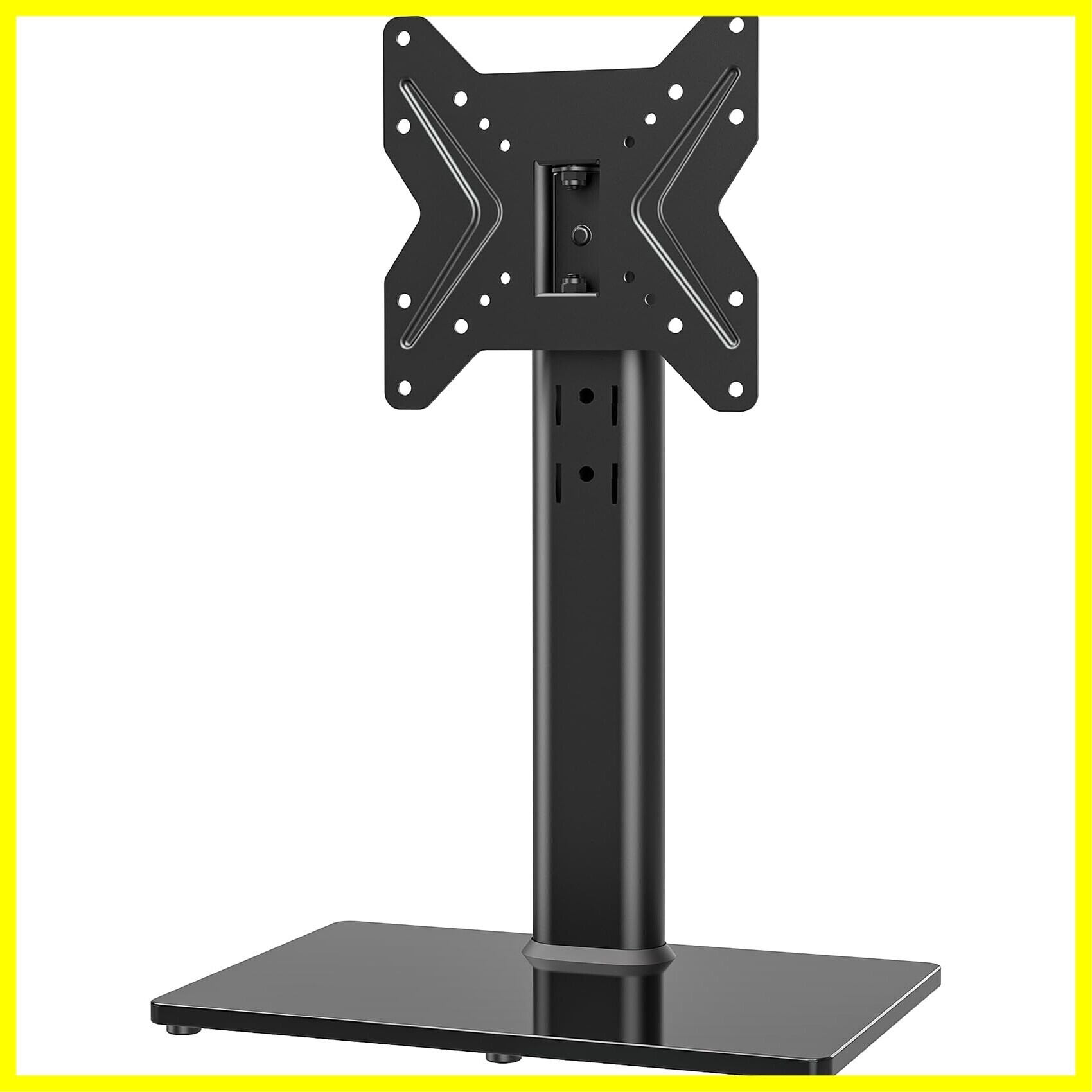 ユニバーサルスイベルテレビスタンド/ベーステーブルトップテレビスタンド、90度回転、4レベルの高さ、ヘビーデューティ強化ガラスベース、最大99lbs、HT02B-001を保持して19から39インチテレビ用スタンド