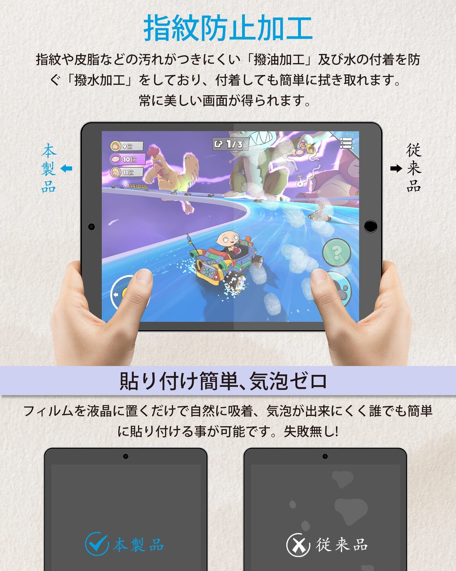 【反射防止・指紋防止】ペーパーライクのアンチグレア加工防止、太陽や照明の反射を抑え、光の映り込みを防ぎため、アウトドアで端末の使用に影響が有りません、目に優しく見やすい画面を保ちます。撥油加工をしており、指紋や汚れが付きにくくになり、付着しても簡単に拭き取れます。常に美しい画面と滑らかでよい操作が得られます。