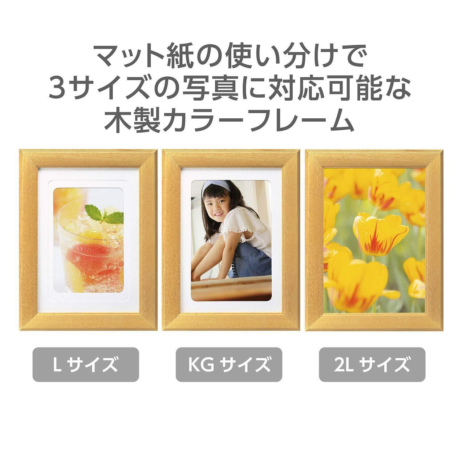 2枚のマット紙(中額)を組み合わせて3サイズの写真が飾れる3WAY木製フレーム。