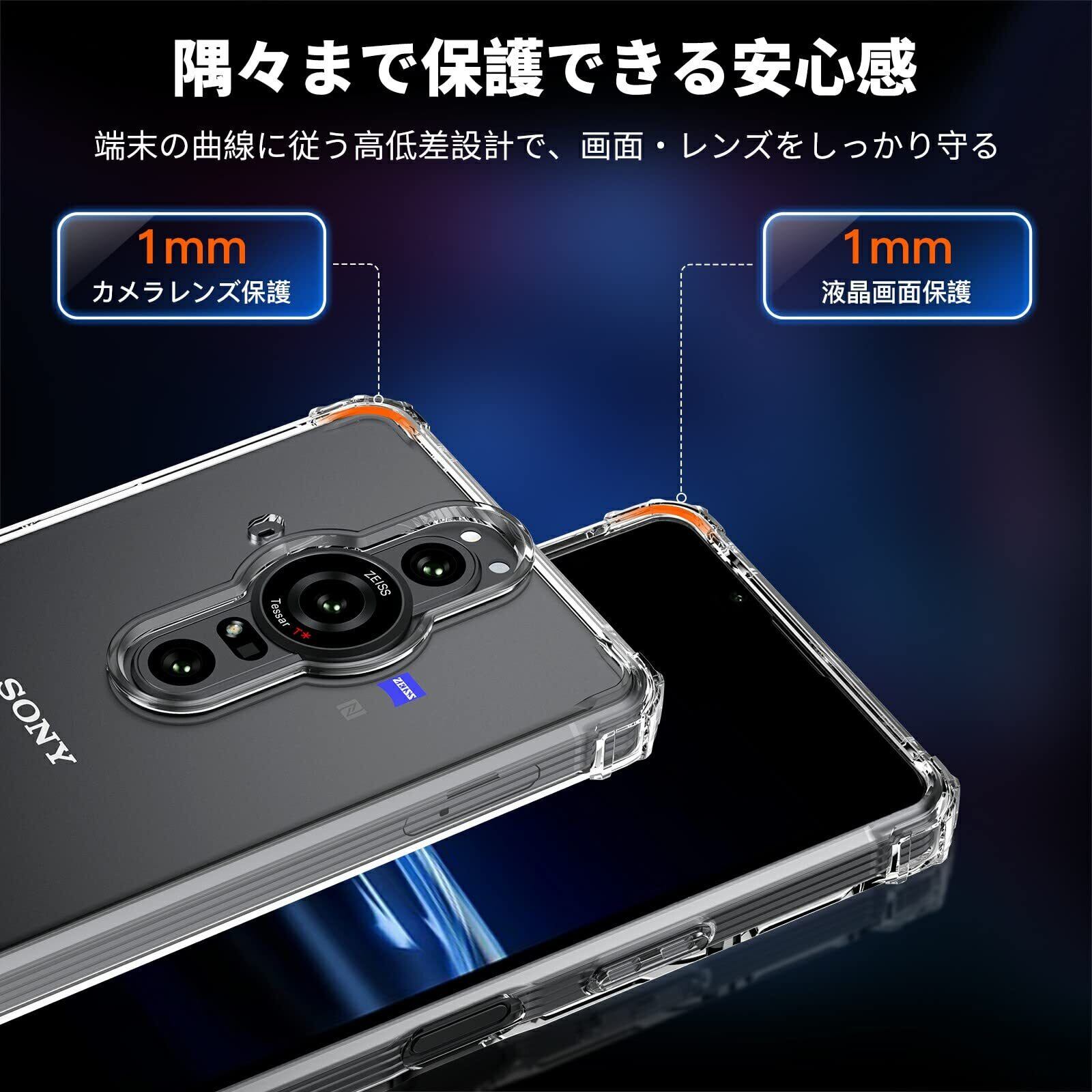 【ぴったりフィットする透明ケース】SONY(ソニー) Xperia Pro-I (2021) 専用にオリジナル設計しているためジャストフィットします。装着したらわずか2mmの厚みが増やすので、ケースの存在感を極めて抑えます。透き通ったTPUケースは、携帯電話の本来のデザインと美学を損なわず、携帯電話自体をうまく表示できます。