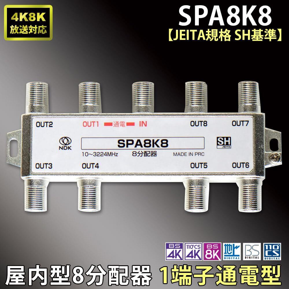 二幸電気工業 アンテナ分配器 8分配 (4K 8K BS CS CATV 地デジ) 屋内用 一端子電流通過型 SHマーク付 (SPA8K8) (1端子通電8分配器)