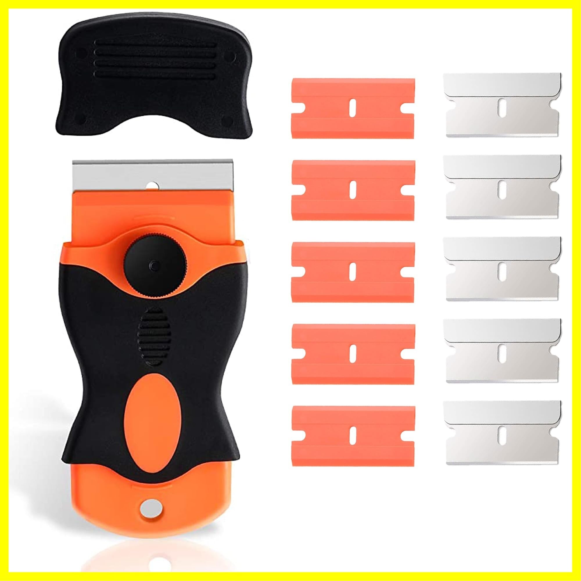 Vitzee プラスチックスクレーパーシールはがしヘラ+5枚プラスチックブレード+5枚スチールブレード 替え刃式シール剥がしヘラ ガラス掃除 お風呂 キッチン 車検カーボンシールはがし ステッカーはがし デカールはがし 両面テープ剥がしヘラ