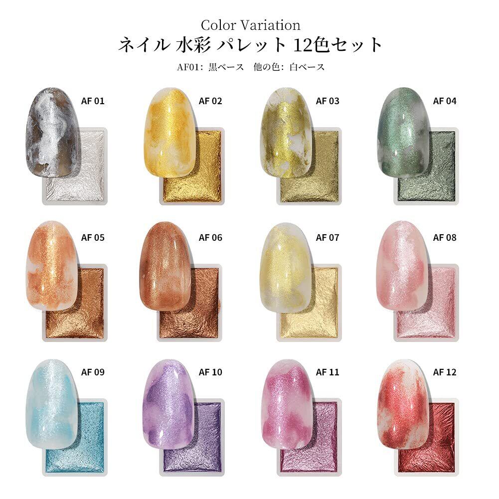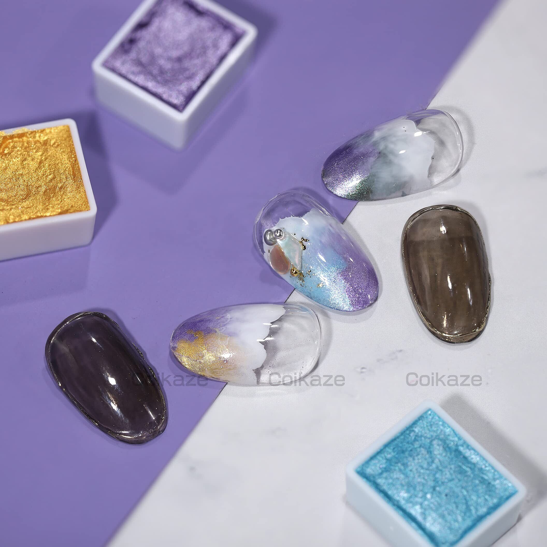 ジェルネイル 水彩パレット ネイル アート 全12種 ニュアンスネイル 水彩ネイル coikaze マーブルネイル 水彩アート たらしこみアート たらしこみネイル メタリックネイル…