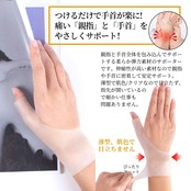 【独特な設計】つけるだけで手首が楽に!伸縮性にすぐれているので手の形状にピッタリフィットする手首サポーターです。薄型でベージュや半透明なので目立たず、指先が開いているので細かい仕事も問題ありません。