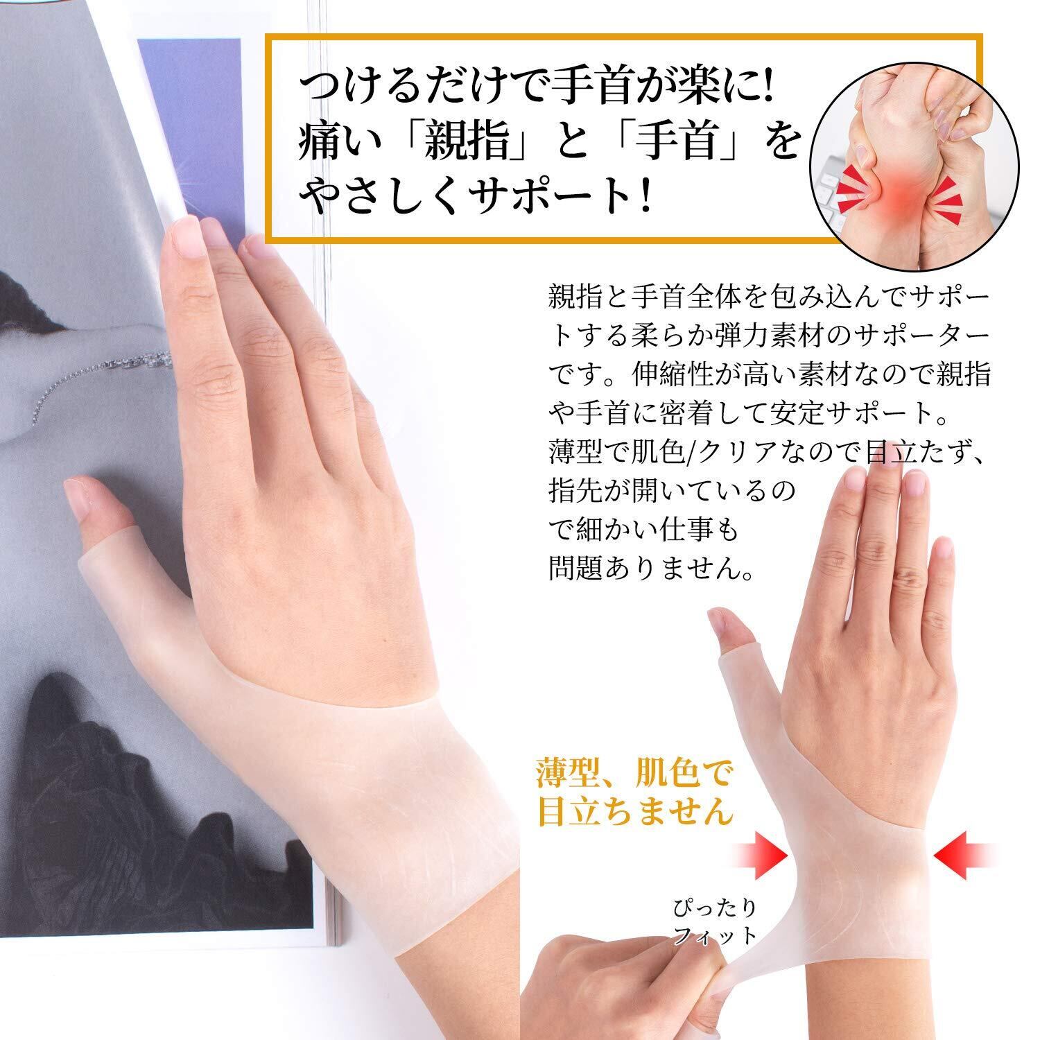 「2枚組」手首サポーター 親指の固定 腕 サポーター 親指 リストバンド シリコン素材 手首 水仕事 家事OK 男女兼用(クリアーM) 左右セット