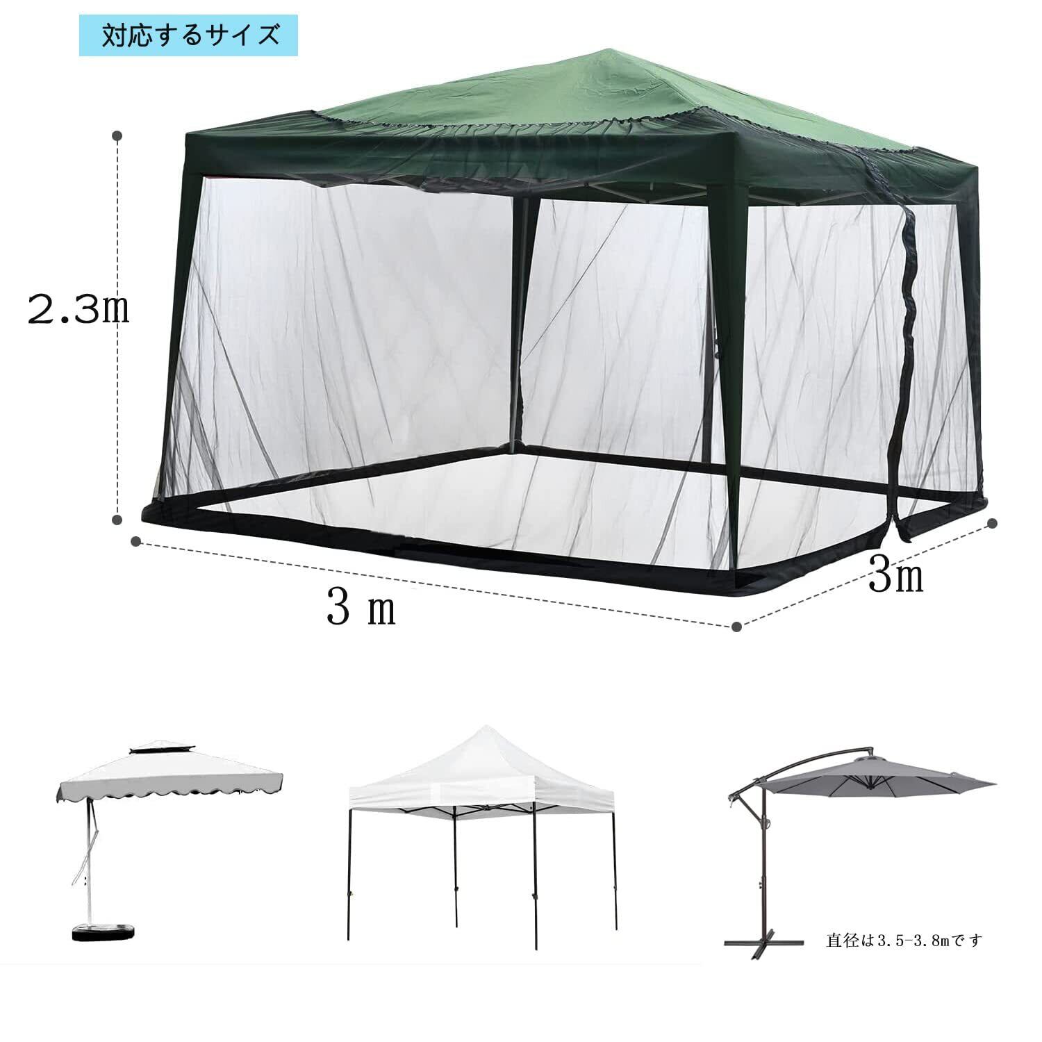 Eioxosp 蚊帳 アウトドア タープテント 防虫ネット 大型 パラソル用メッシュシート キャンプ キャンプ メッシュスクリーン(最大の適合性 3 x 3 x 2.3 m 対応) (ブラック)