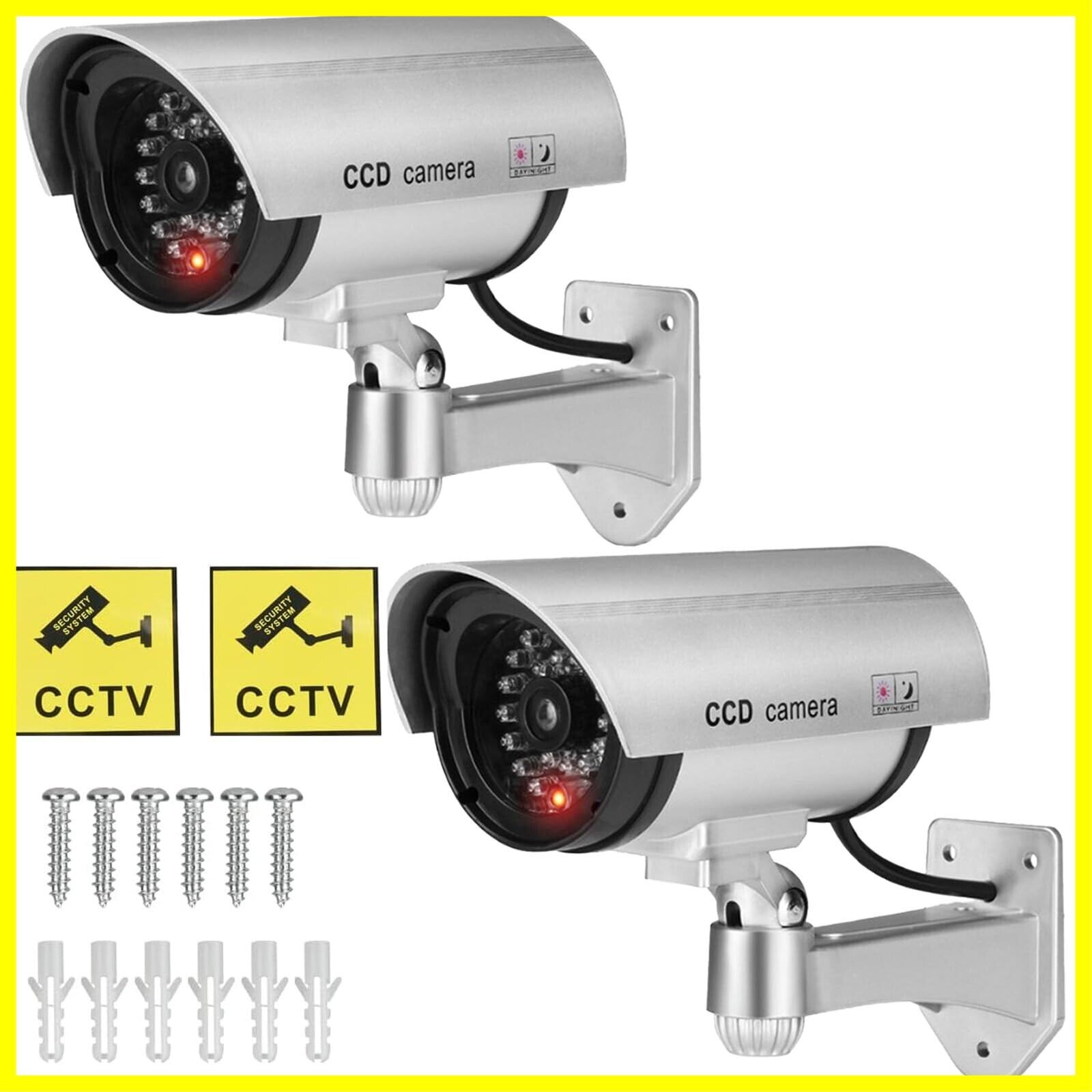 ダミー防犯カメラ 2台セット 屋外対応 赤色LED点滅 360°調整 電池式 取付簡単 ステッカー付