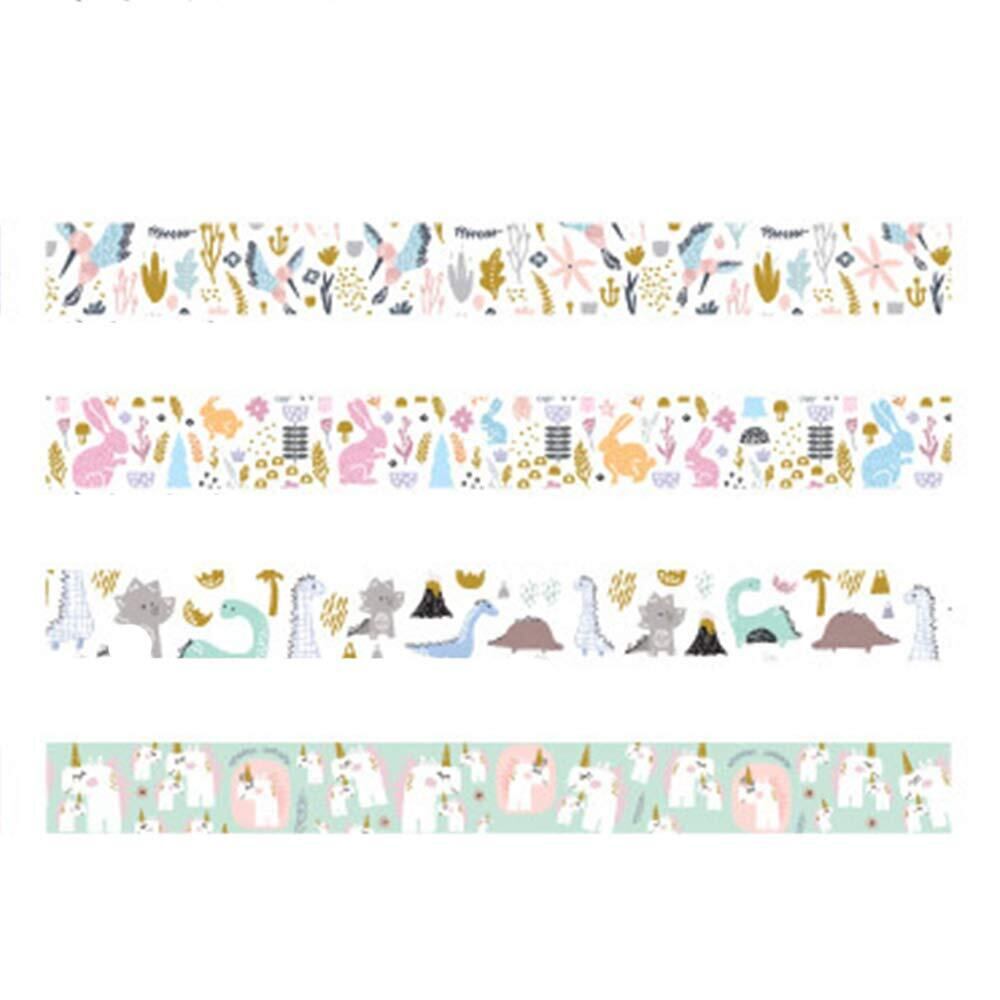 Yubbaex マスキングテープ 金箔押し 可愛いデザイン 15mm幅 x 4巻 プレゼント包装、DIY工芸品、ノートの装飾に使える (動物)