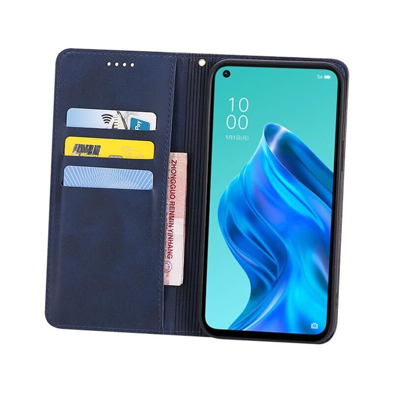OPPO Reno5 A ケース 手帳型 OPPO Reno 5A 手帳型ケース Reno5 A スマホケース カバー 手帳型 PUレザー カード収納 財布型 耐衝撃 ケース マグネット スタンド機能付き 5色(OPPO Reno5A ケース 手帳型) (深い青)