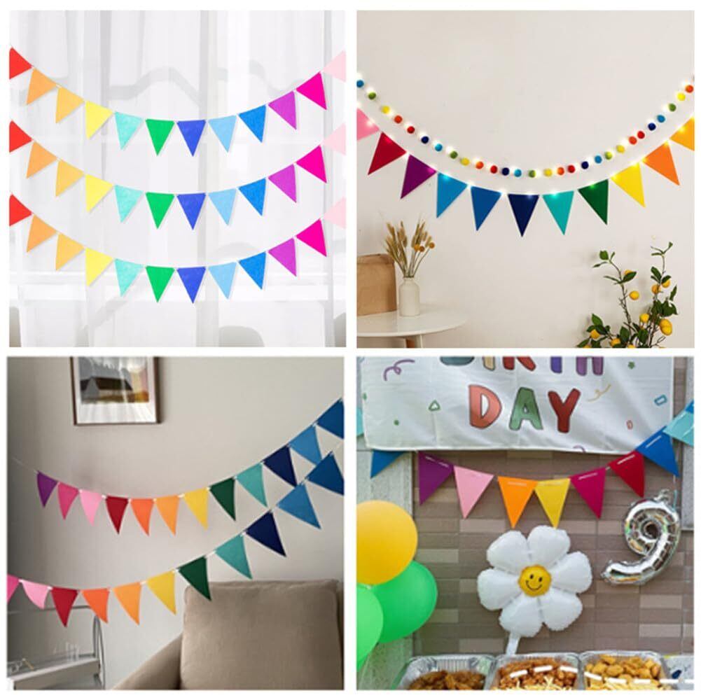 【複数の色】:ペナントバナーはさまざまな色でデザインされており、パーティーに雰囲気を加え、あなたとあなたの友人に忘れられない視覚体験を与え。