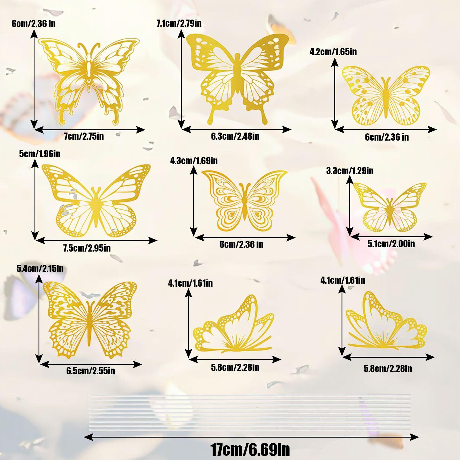 【幅広い用途】蝶の装飾は、任意の滑らかな表面、リビングルームの壁の装飾、子供たちのパーティーの装飾、部屋の装飾、誕生日ケーキや他の様々なお祝いのケーキの装飾に適用することができます。
