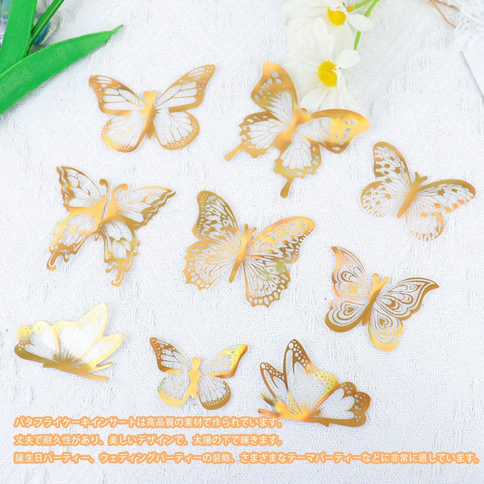 ケーキトッパー 蝶型 貼り紙 36個セット 3D立体 蝶型 貼り紙 ケーキデコレーション 蝶 ウォールステッカー 壁飾り 壁紙シール ケーキ飾り キラキラ バタフライ ホームデコレーション用 中空アート DIY 貼り紙 開店のお祝い 誕生日 装飾 飾り用 (ゴールド)