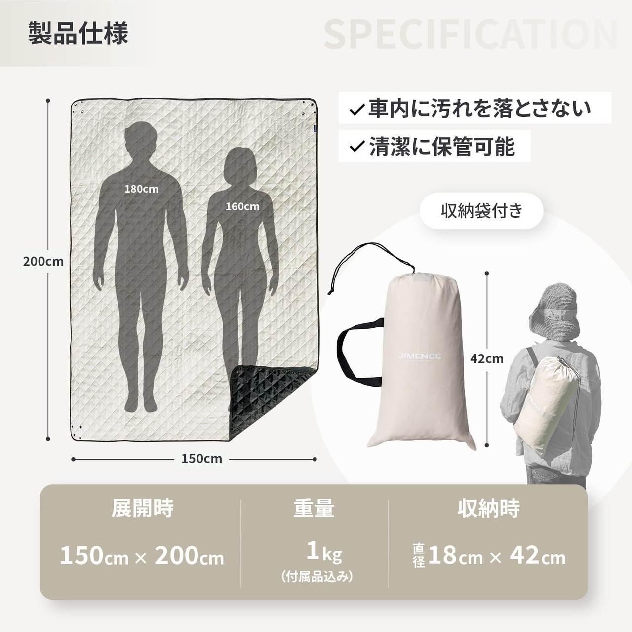 JIMENCE(ジーメンス) レジャーシート 厚手 防水 収納袋付き 1~3人用 200×150cm キャンプマット(オフホワイト)