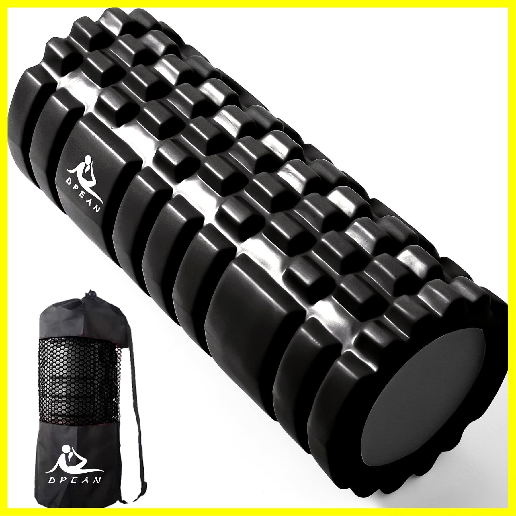 フォームローラー【中実 割れない】DPEAN 筋膜リリース グリッド ソリッドコア 割れない 3種類凹凸の設計 ヨガローラー 自宅トレーニング EVA素材 多色 筋膜ローラー筋肉ほぐし スポーツ フィットネス ストレッチ器具(ブラック,長さ33cm×直径14cm)