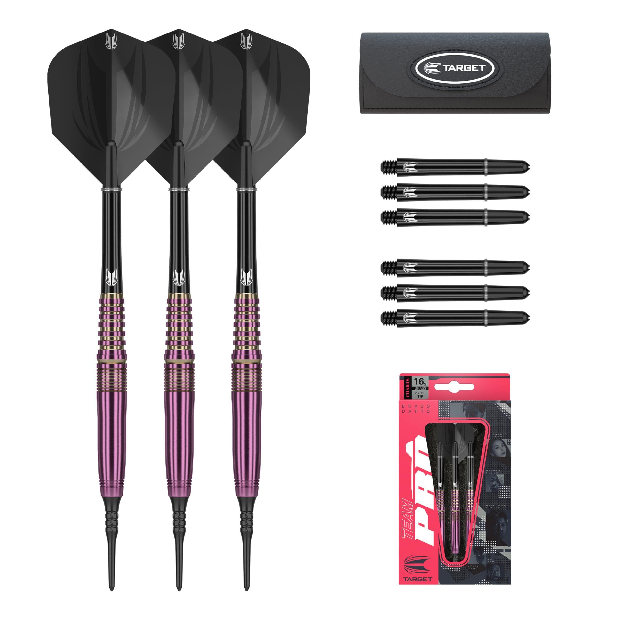 TARGETが日本市場向けとして初開発した本格的なブラスダーツセット。バレルのデザインは世界で活躍する各プロ選手のオリジナルモデルをモチーフに構成。重量、長さ、径のバランスを再設計しているので初心者にも最適。付属のケースは日本では未発表のTARGET製『トライ WALLET』で持ち運びも簡単。予備用のフライト 2セット(6個)、シャフト 2セット(6個)、シャフトリング 2セット(6個)も付属されているので消耗品にもすぐに交換が可能な充実のセット内容。これ1セットで全てが揃うダーツセット。これから本格的にダーツを始めたいと考えている方にも最適なダーツセットがエントリーモデルとして登場しました!ダーツバレルの特徴: タングステンバレルの人気シリーズ、RISING SUNの特徴の一つでもある見た目に美しい流線型のバレル。カットがバレル後部にあるので握る位置を一定にしたい人にオススメ。セット内容:バレル 1set(3本), ソフトチップ 3個, シャフト 9本, シャフトリング 9個, フライト 9個, TARGET トライウォレット 1個 。