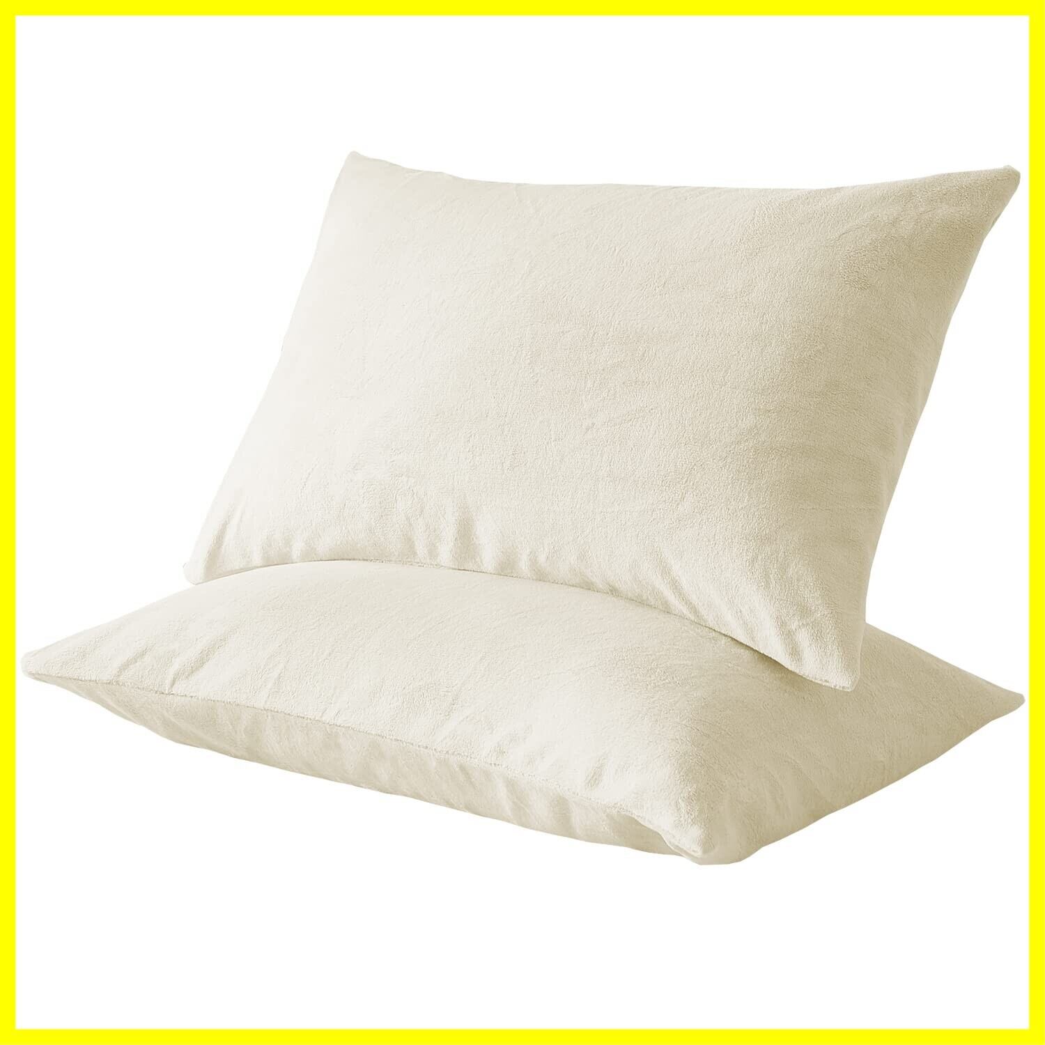 枕カバー 秋冬用 二枚セット マイクロファイバー まくらカバー フランネル パイル地 ピローケース ふわふわ 柔らかく肌触り 暖かい あったか 洗える 静電気防止加工 封筒式 (アイボリー, 50×70cm)