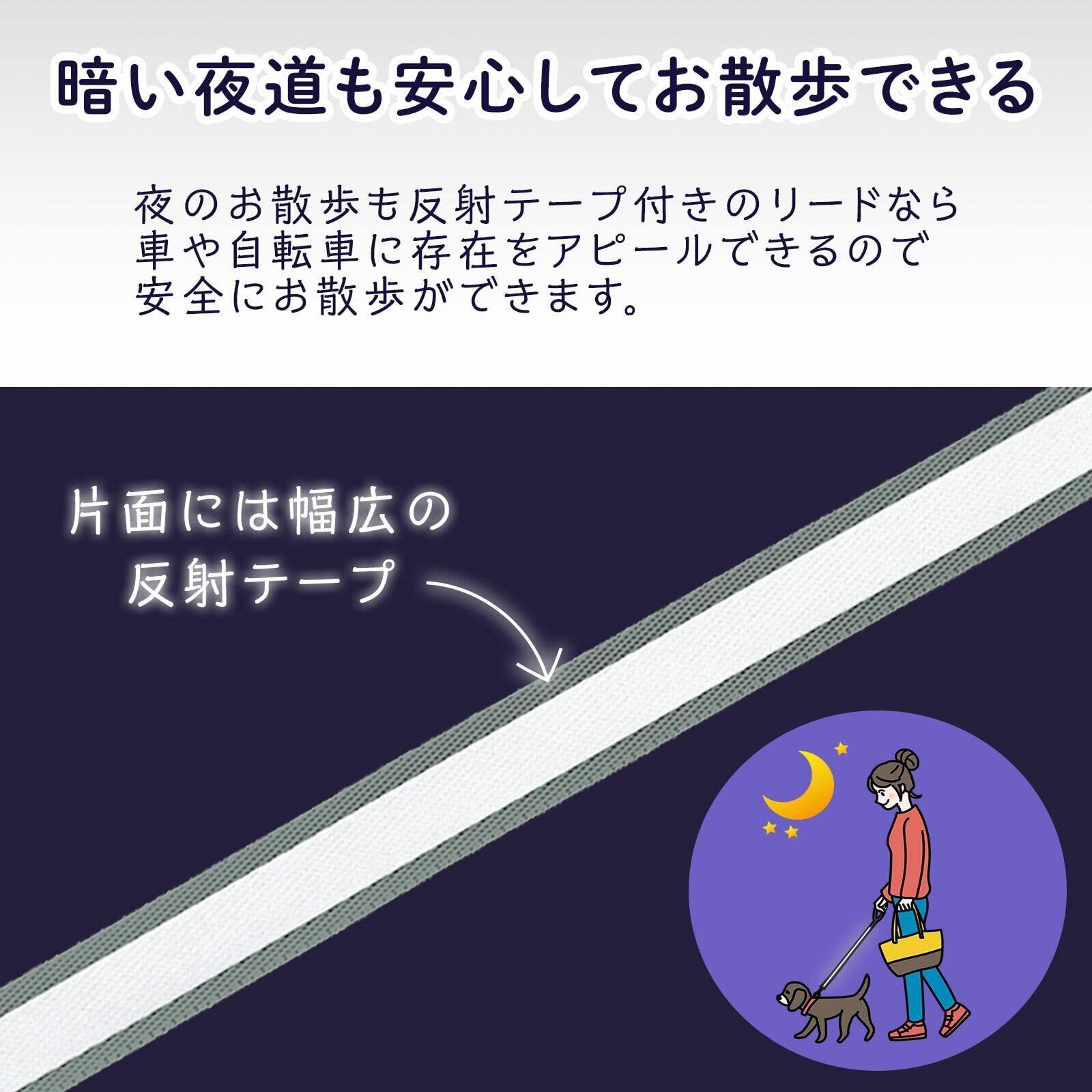 片面に反射テープ付きで夜道のお散歩も安心な伸縮リード!